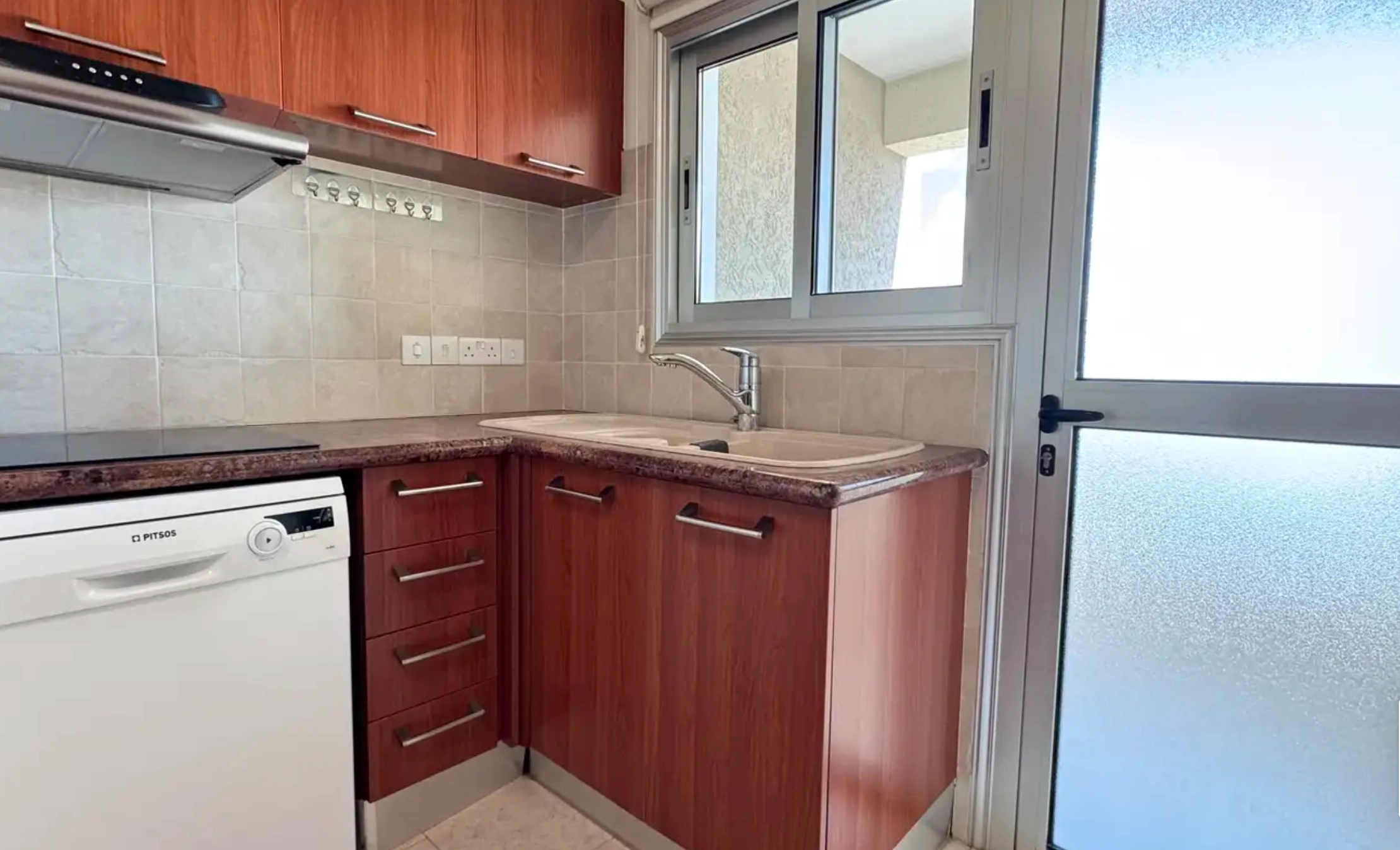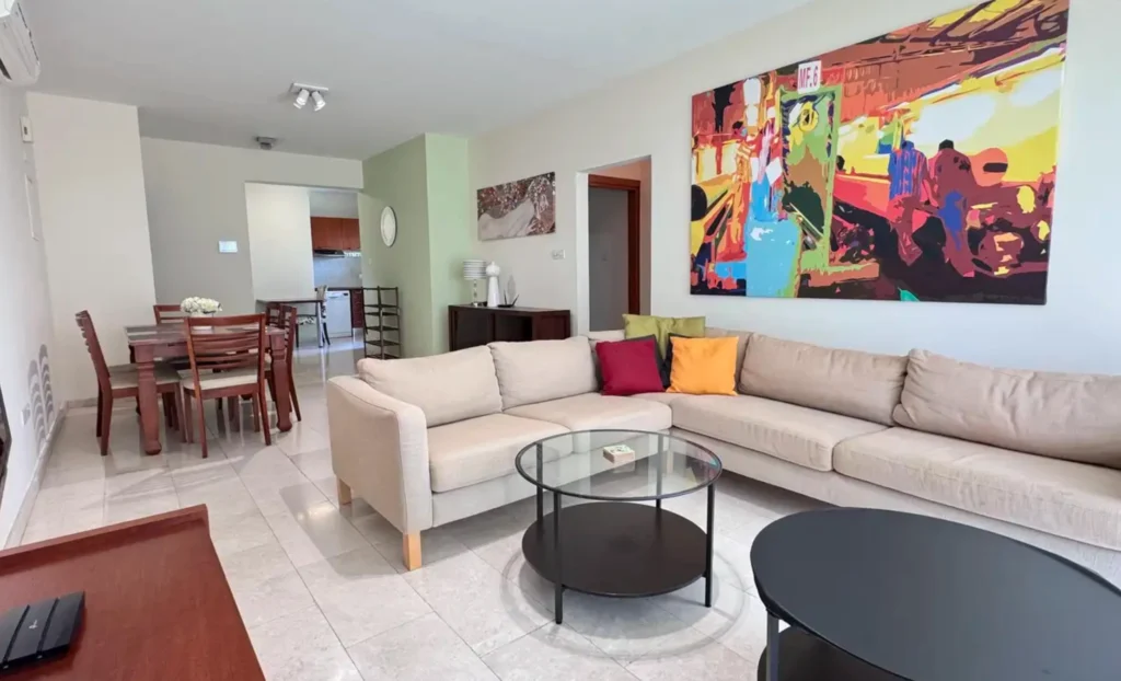 This modern two-bedroom apartment is located in the Mesa Geitonia area of Limassol, close to supermarkets, gyms, and the beach. The property offers approximately 90 m² of living space including a veranda.