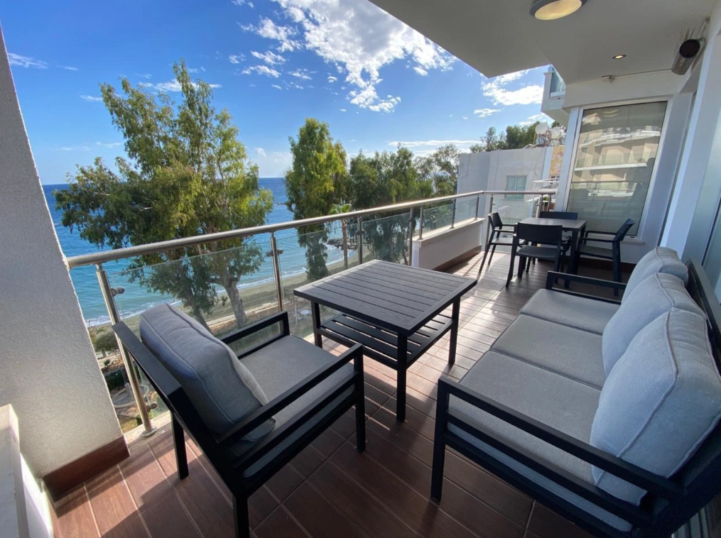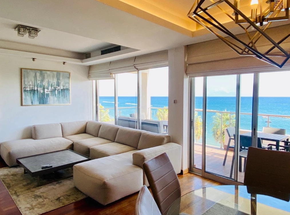 Positioned directly on the seafront in the highly sought-after area of Ayios Tychonas, this exceptional 2-bedroom, 2-bathroom residence offers a rare combination of elegance, comfort, and uninterrupted panoramic sea views. Designed to the highest standards, the apartment features a spacious open-plan living and dining area that flows seamlessly into a fully equipped modern kitchen, appointed with premium Miele appliances, including a dishwasher. Expansive double-glazed windows maximize natural light while ensuring energy efficiency and acoustic insulation. The property is fully furnished with carefully selected luxury furniture and high-quality mattresses, creating a refined and comfortable living environment. Both bedrooms are generously proportioned, and the bathrooms are finished with contemporary fittings and high-end materials. Additional features include a state-of-the-art VRV air conditioning system, high-speed WiFi, and a 65-inch Samsung television (2025 model).