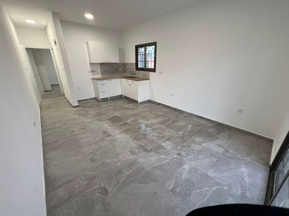 A fully renovated one-bedroom apartment located in the peaceful residential area of Episkopi. The property has been upgraded to a modern standard, offering a fresh and clean interior with a functional layout designed for comfortable everyday living. It comprises a bright living and dining area, a separate bedroom, a contemporary bathroom, and a well-organised kitchen space. The renovation enhances both the aesthetic and practical aspects of the apartment, providing a neutral and modern base suitable for personal customization. The interior features updated finishes and a simple, efficient layout that maximises usable space and natural light. The apartment is offered unfurnished and without electrical appliances, giving full flexibility to the future owner or tenant to furnish and equip the property according to their own style and needs.