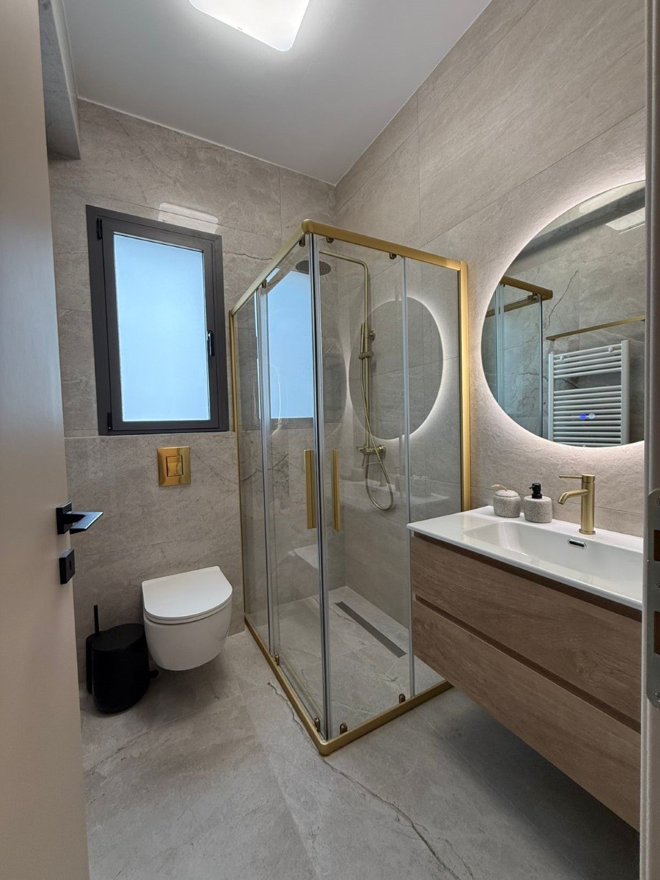 Penthouse • smart home • 60m terrace • premium | Mesa Geitonia 105 m² + veranda 60 m² 3 bedrooms 2+1 bathrooms Smart home VRV + underfloor heating Premium finish Bosch appliances Large private terrace New building Price: €3500 / month