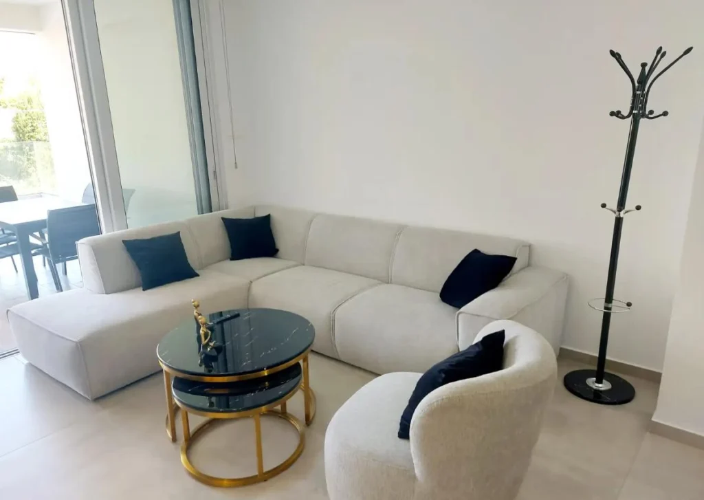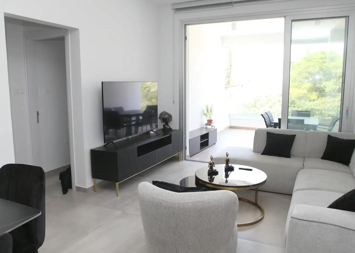 Two-bedroom apartment for rent in the area of Petrou kai Pavlou, Limassol city. The apartment is located on the 1st floor of a modern building built in 2024, consisting of 8 apartments. The area is 96 m2. It includes a living room with a dining area and an open-plan kitchen, two bedrooms, two bathrooms (one of them en-suite and one guest), as well as two verandas of 19 m2 and 7 m2. The apartment is fully furnished and equipped with household appliances and air conditioning, while one of the bedrooms remains unfurnished. There is a covered parking space and a storage room on the ground floor. The building is located in a convenient location with quick access to the highway, the city center, schools, supermarkets and other services.