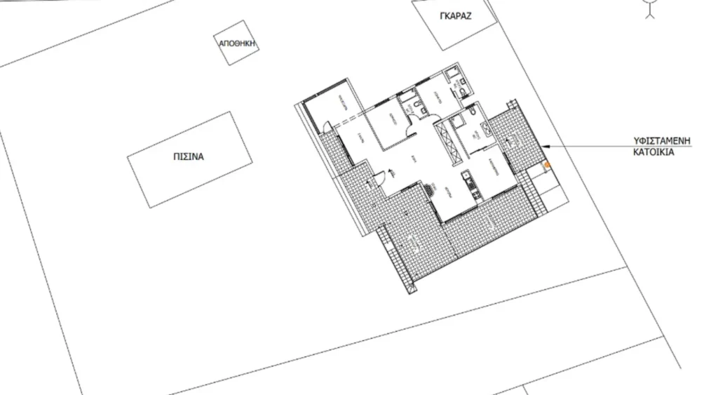 Four bedroom villa for rent in Moni area, Limassol city. The house has an area of 185 m2, a plot of 1260 m2, spacious verandas with a total area of about 105 m2. The villa is fully furnished and equipped with air conditioning in all rooms. The house is renovated, made in a combination of modern and traditional style. The layout includes a spacious open-plan kitchen-living room with access to the pool, 4 bedrooms and 4 bathrooms. There is an additional kitchen and a separate bedroom on the lower level, which is convenient for guests or staff. There is a large private swimming pool, a well—maintained garden with greenery, a barbecue area, outdoor and covered terraces, as well as parking for several cars. The house offers scenic mountain views and a convenient location.