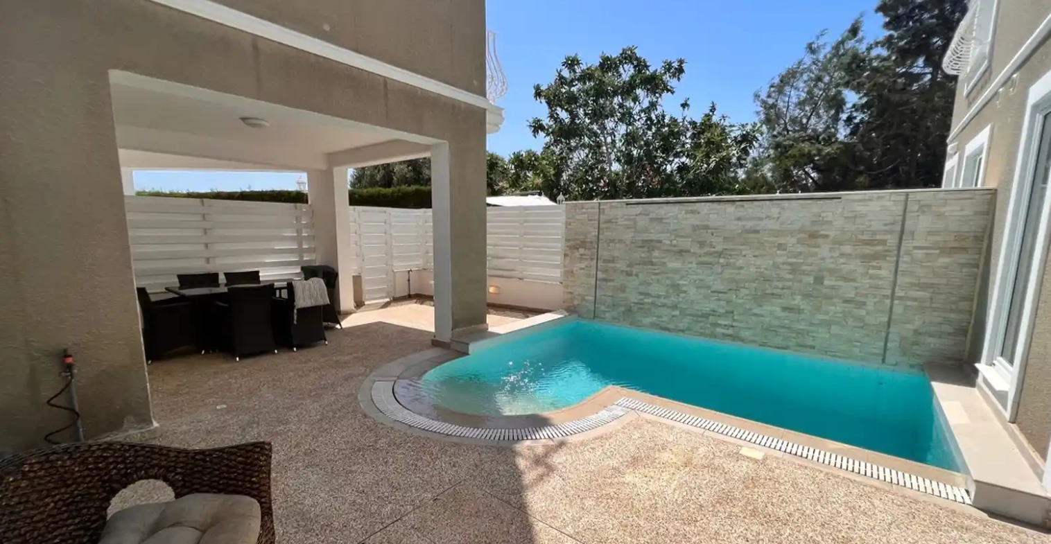 Роскошный дом с четырьмя спальнями расположен в районе Лимассола Полемидия. Дом предлагает красивое жилое пространство с бассейном, где вы можете наслаждаться джакузи и водопадом бассейна. Дом сочетает в себе элегантный функциональный дизайн, элитные интерьеры и окружающее освещение, которое кажется вневременным и изысканным. Инновационное использование текстуры и формы создает привлекательную визуальную эстетику благодаря стеклянным дверям и окнам от пола до потолка, из которых вы можете наслаждаться открытой зоной бассейна.