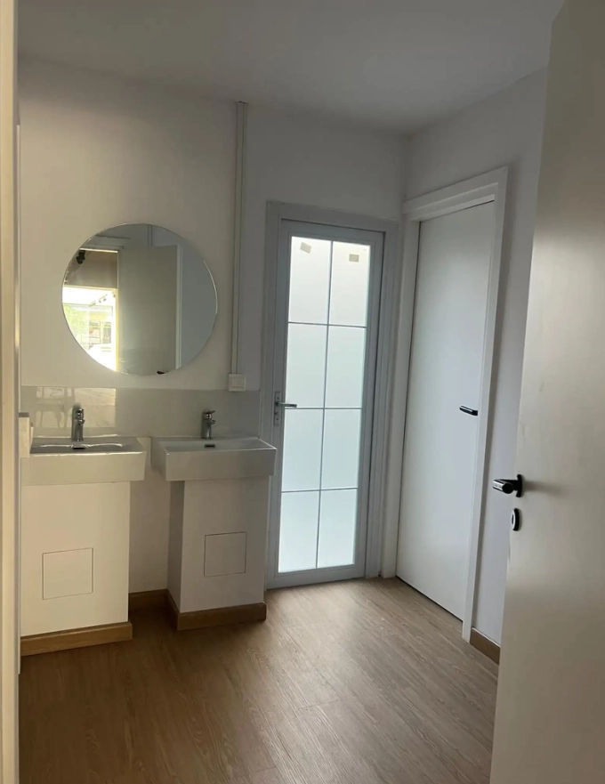 Современный интерьер с ламинированным полом и полным кондиционированием воздуха создаёт комфортное и профессиональное рабочее пространство. В здании есть полностью оборудованная кухня и четыре туалета для удобства персонала и посетителей.