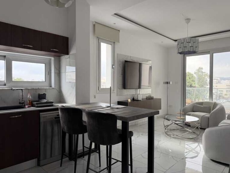 Аренда. Агиос Зони. 2200 евро. Двухкомнатная квартира. 2 ванные комнаты. Кладовая, парковка. LN277/208