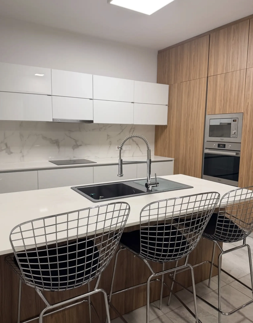В доме просторные и хорошо продуманные отдельные жилые зоны, три большие спальни и две современные ванные комнаты. Полностью оборудованная кухня включает в себя высококачественную бытовую технику LG и Bosch, а сантехника премиум-класса Sanitana добавляет изысканности всему помещению.