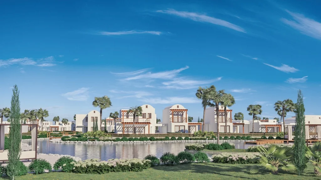 The project is based on Greek Island design, elements that have been adapted to become homes for permanent or seasonal residences.