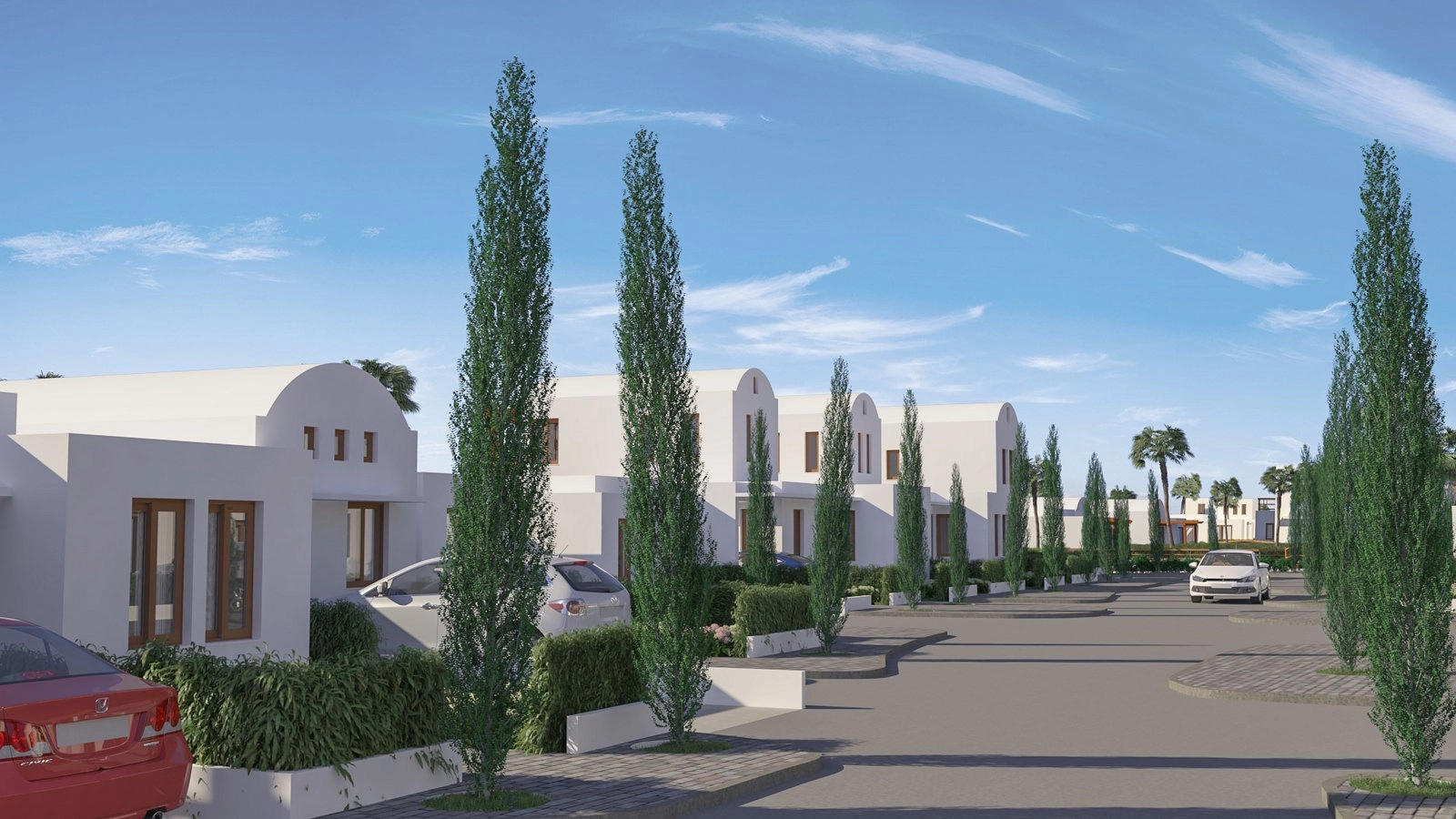 The project is based on Greek Island design, elements that have been adapted to become homes for permanent or seasonal residences.