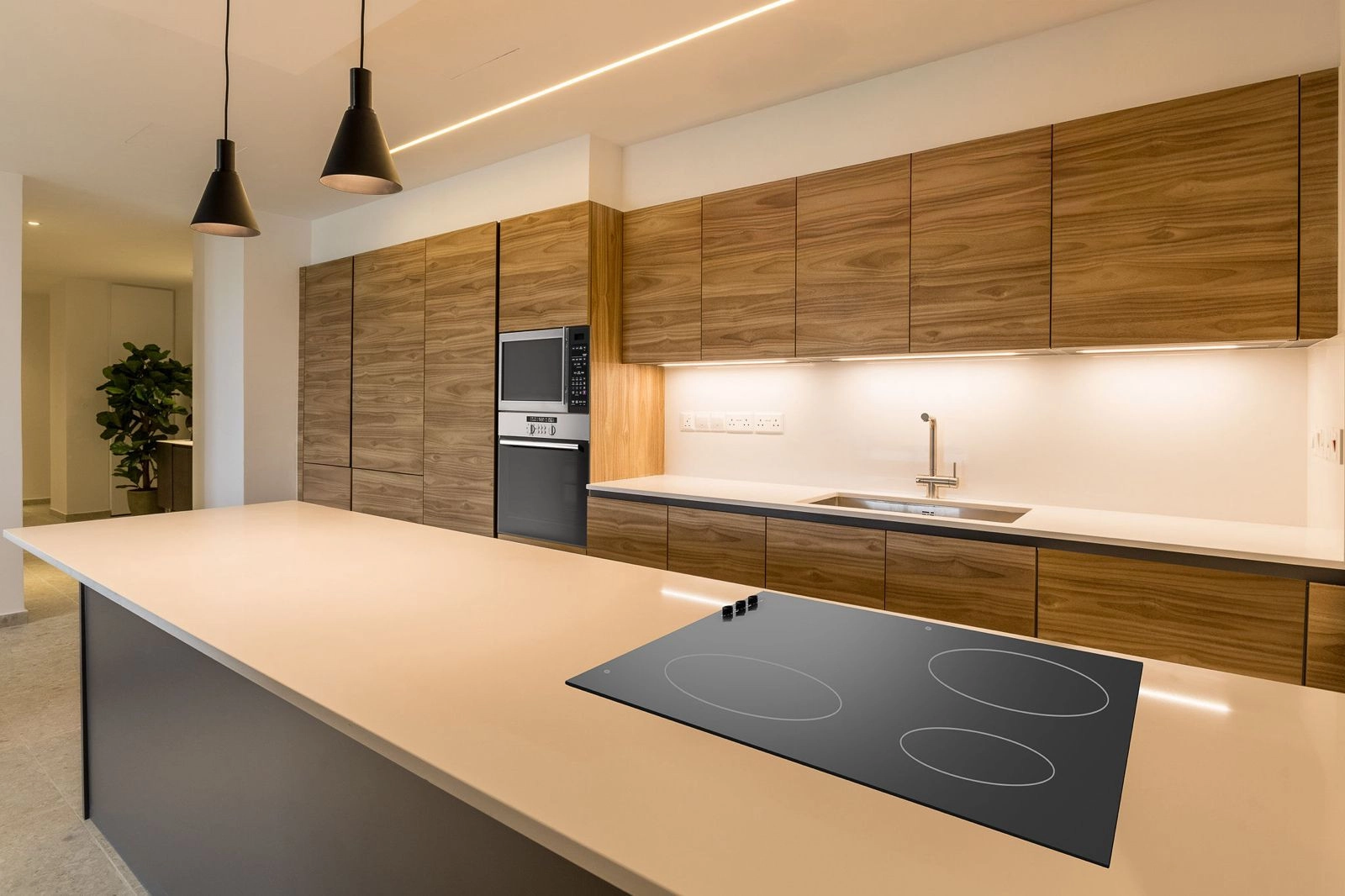This comfortable three bedroom apartment also enjoys a large open plan living, dining and kitchen area and a staircase leading to the lower ground floor where an additional ensuite bedroom, kitchenette and laundry room can be found.