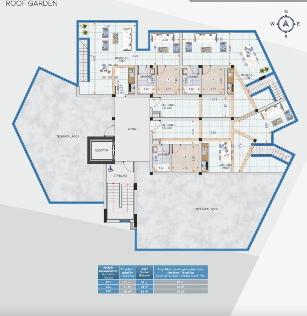 The three sixth floor apartemnts of the project will have a private and luxurious penthouses on the seventh floor, with α magical panoramic south-east view of the City of Larnaca just 200 meters from the sea.