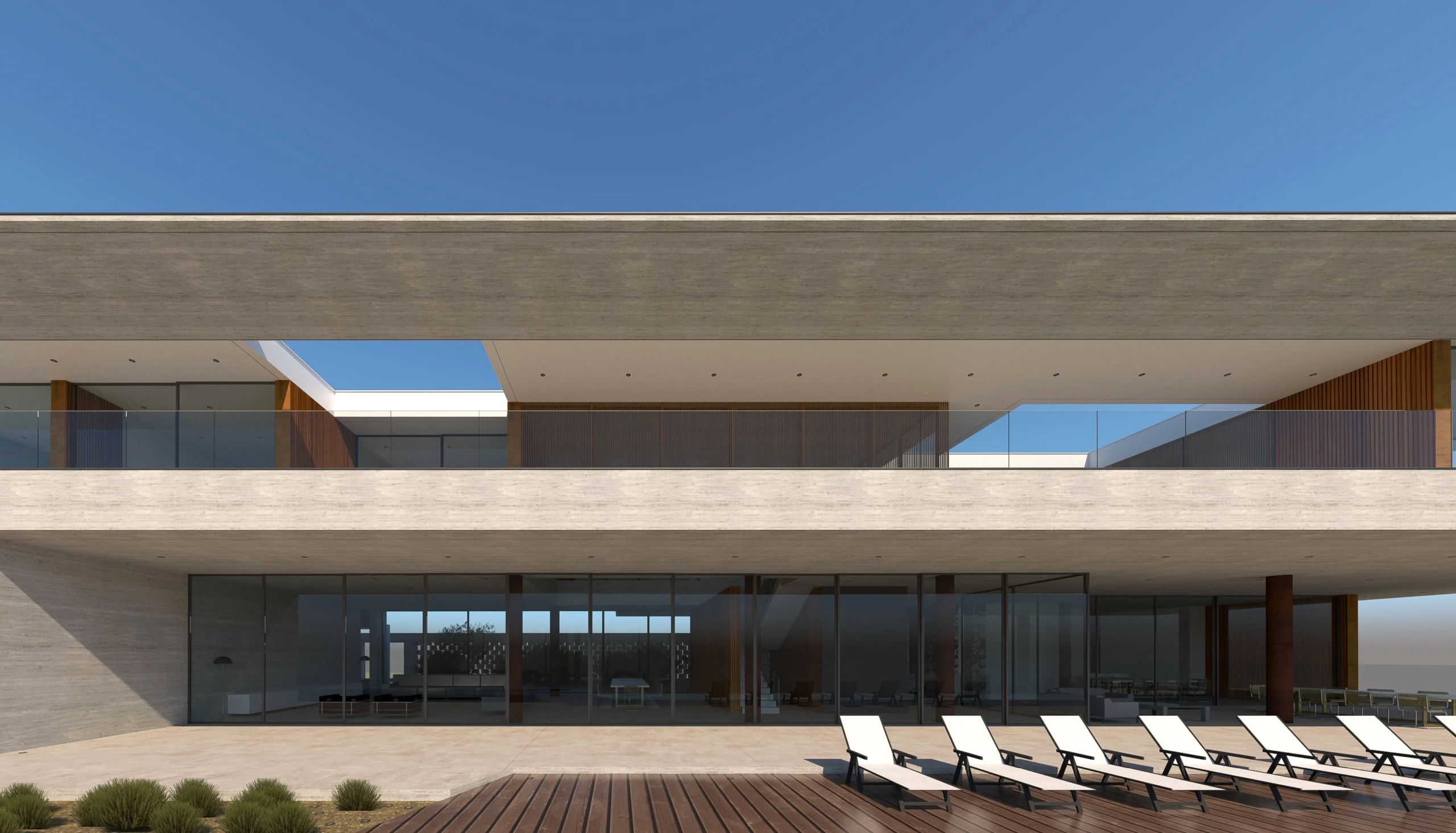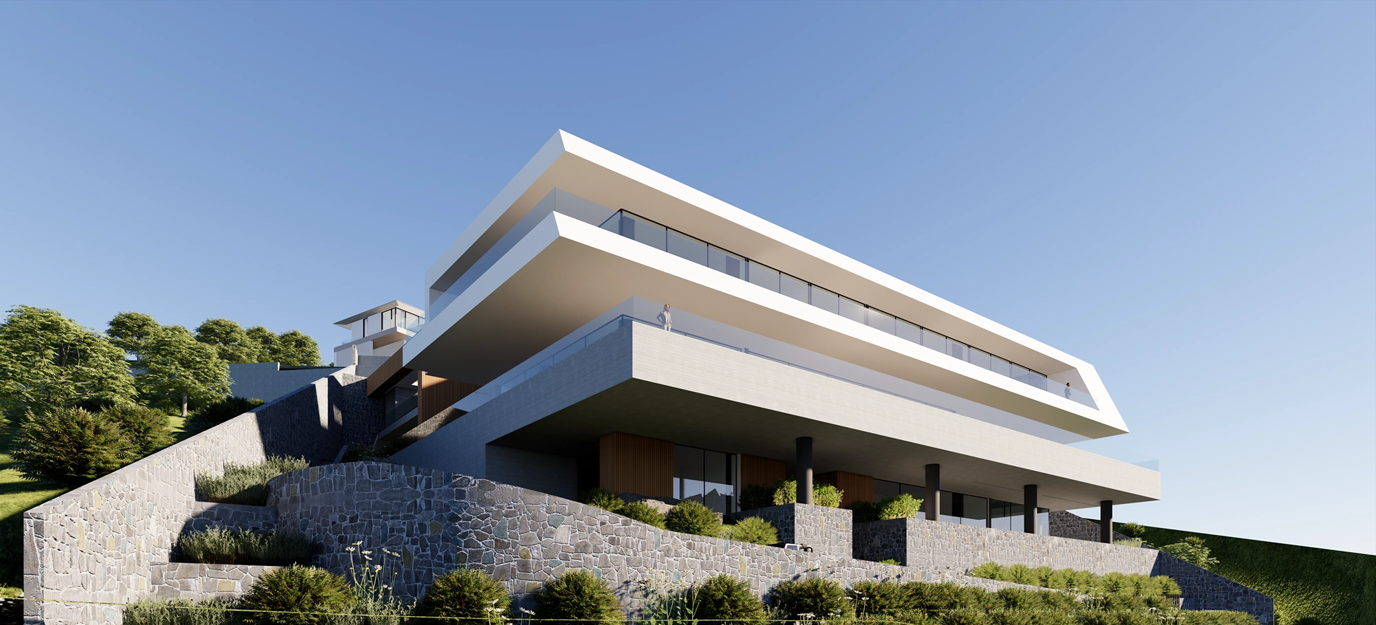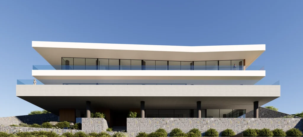 – Modern Mediterranean architecture with floor-to-ceiling windows