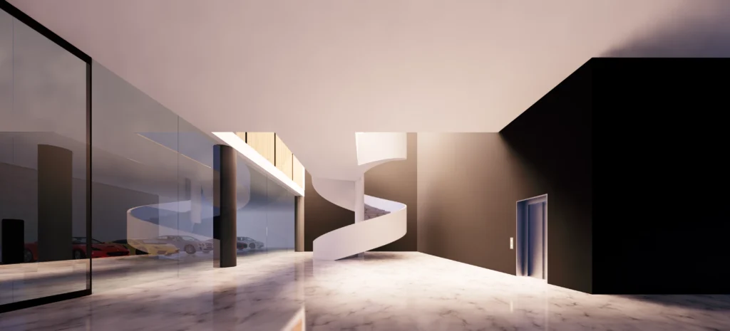 Designed across three levels, the villa embodies modern Mediterranean architecture with its clean lines, open layouts, and full-height glass balustrades that extend the horizon. The main entrance opens to a bright living area with direct access to a landscaped garden, terrace, and infinity pool. The layout is perfectly designed for entertaining, with a bar area separating the main living and dining spaces, and an additional family lounge connected to the kitchen.