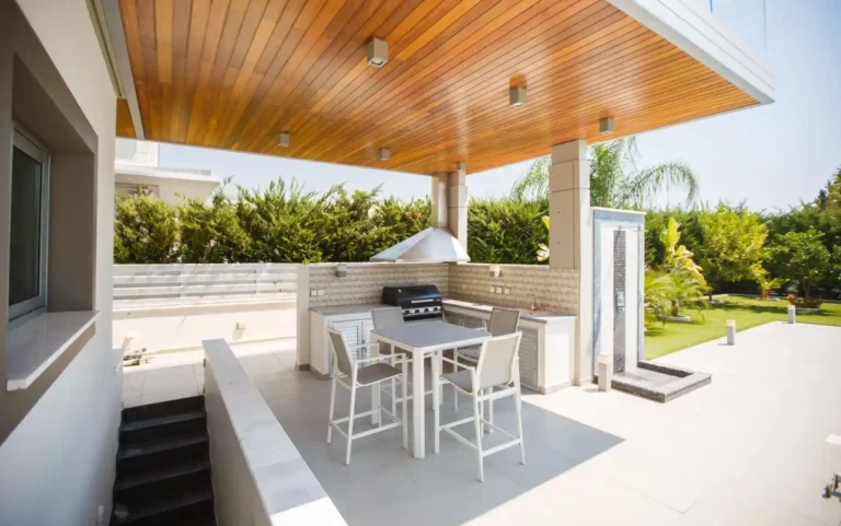 Modern 4 bedroom villa in the prestigious area of Agios Tychon, close to all necessary amenities and infrastructure and within easy reach to the sea, just 1000m. The villa resides in a plot area of 590 sq.meters with an internal area of 275 sq.meters. Villa consists of three floors plus covered Roof garden and four bedrooms in total accompanied by one maid’s room / guest studio. Villa is fully furnished and equipped.