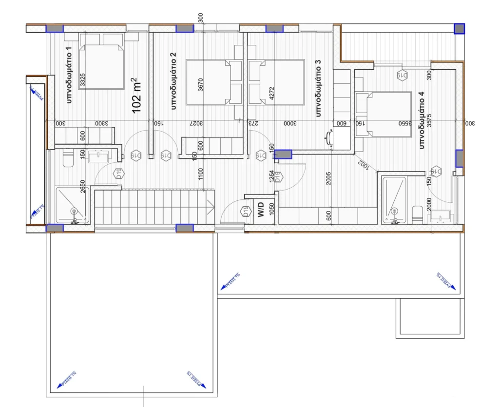 This residence consists of an open plan spacious living and dining room, a kitchen with dining area, a guest toilet on the ground floor and also a playroom or office room can be configured according to the needs of each family.