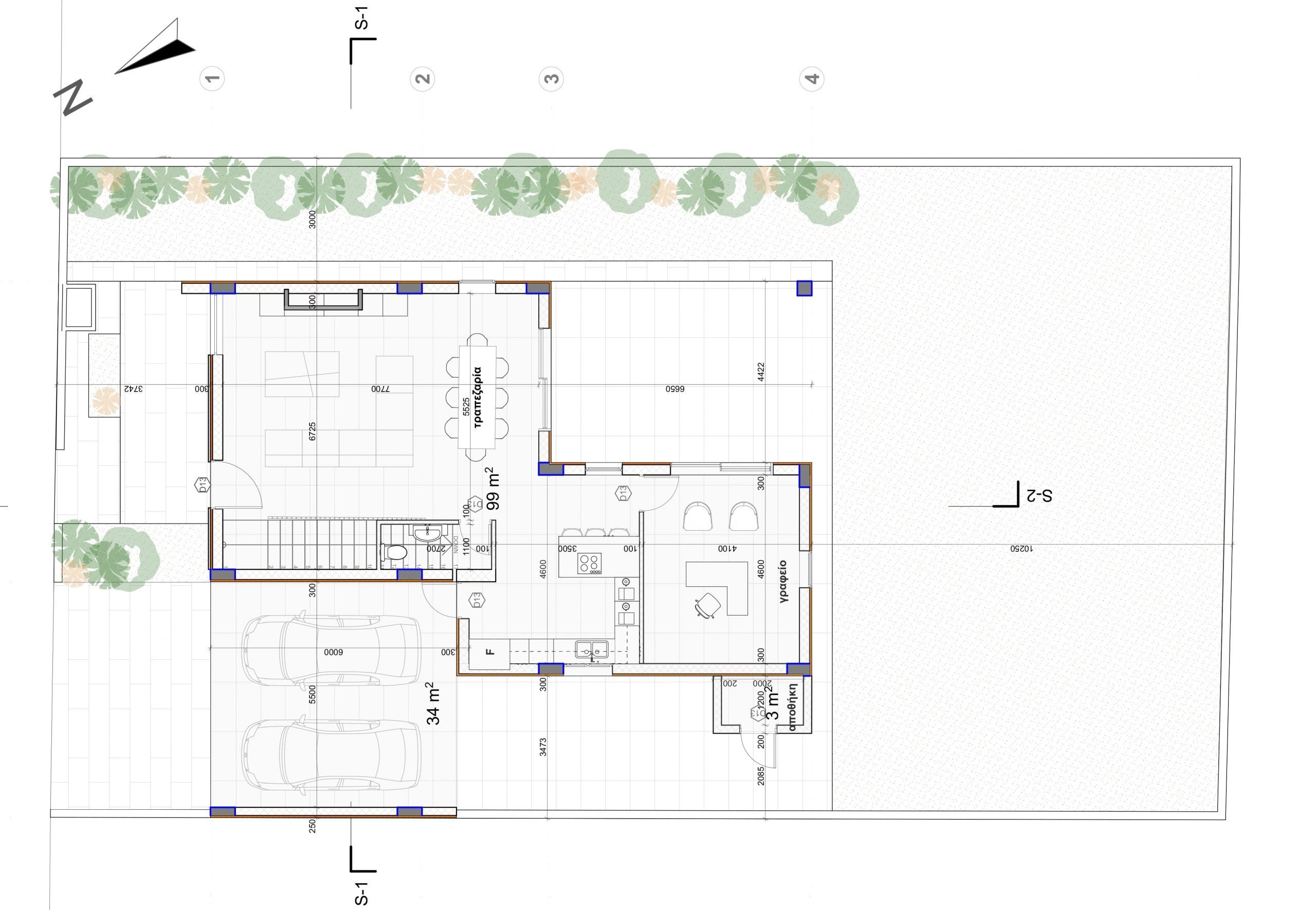 This residence consists of an open plan spacious living and dining room, a kitchen with dining area, a guest toilet on the ground floor and also a playroom or office room can be configured according to the needs of each family.