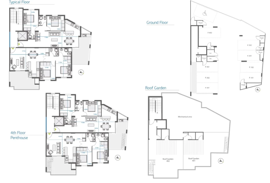 Each two-bedroom unit within the building is thoughtfully designed to maximize space and functionality. The bedrooms are generously sized, providing ample room for relaxation and privacy. Beyond the comfort of the apartments, the building offers a range of amenities to enhance residents’ lifestyles. The 2 penthhouses have a large space each for social gatherings or simply enjoying panoramic views of the city.