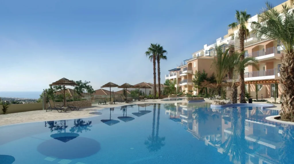 Apartment 11E is a luxurious 2-bedroom apartment featuring a large and light-filled living and dining area. It boasts a spacious balcony with a tremendous view of the fertile plains of Geroskipou in Paphos and the Mediterranean Sea. This apartment includes a private swimming pool and landscaped gardens. Ready to move in, it comes with a free furniture package. External features include gardens, large sun terraces, and stone paving. The apartment offers ample parking and access to amenities such as a restaurant, a mini market, and a clubhouse within the complex.