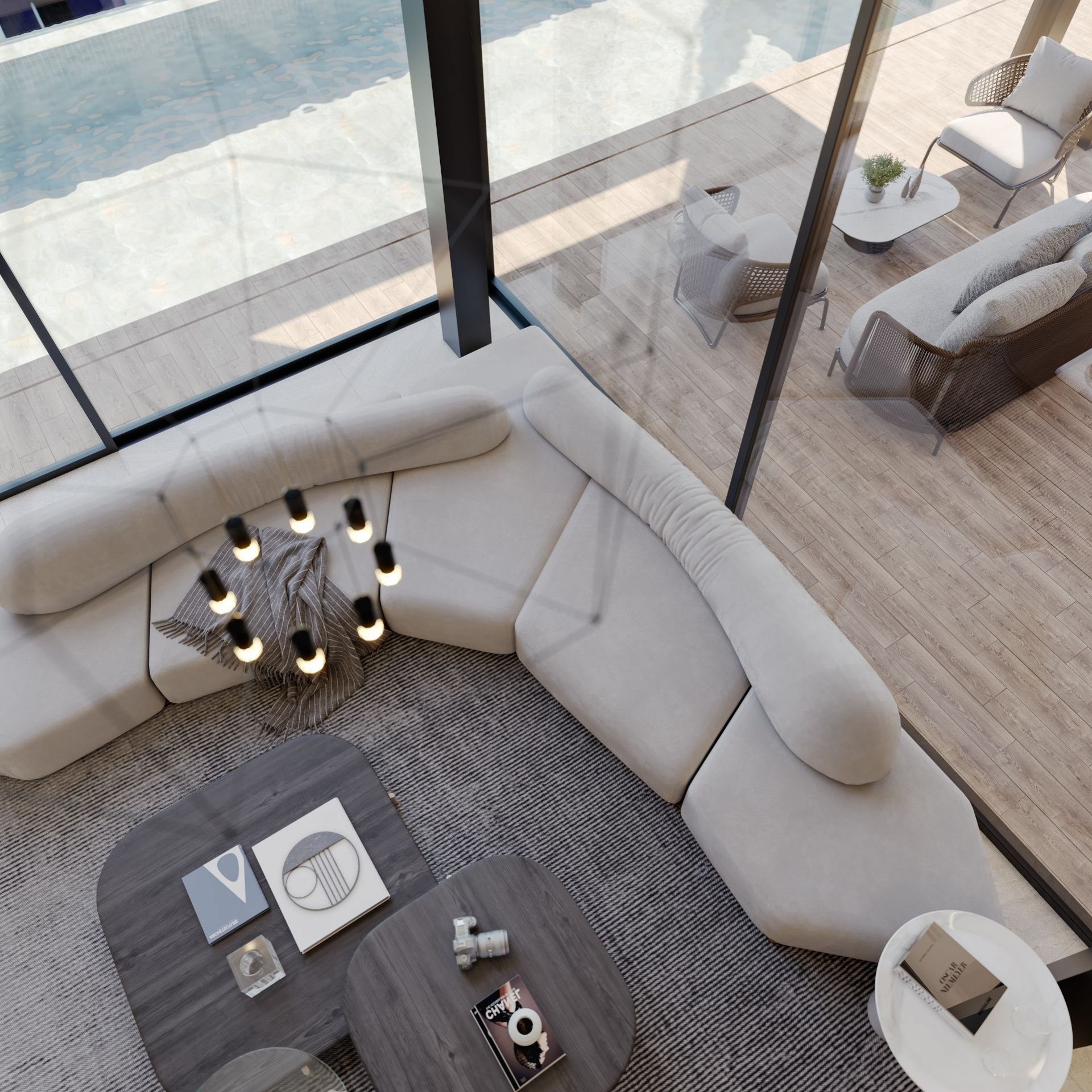 The 2nd floor (96m²) captures the essence of modern living with an open-plan living and kitchen area, a versatile bedroom or office, and direct access to the outdoor leisure spaces. Step outside to enjoy the 33m² swimming pool, outdoor WC and shower, and a superb external kitchen with BBQ area, perfect for entertaining family and friends in the Cyprus sunshine.