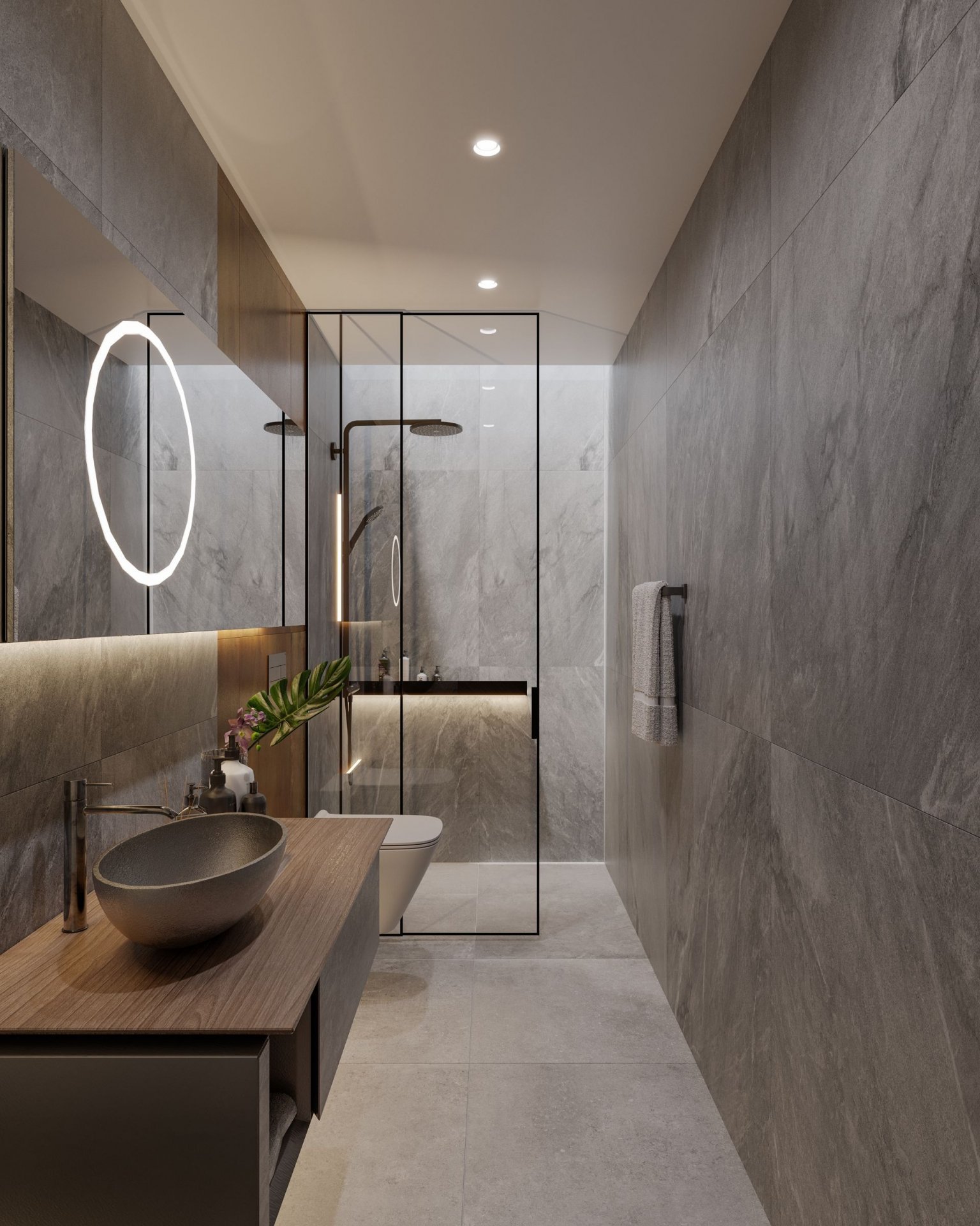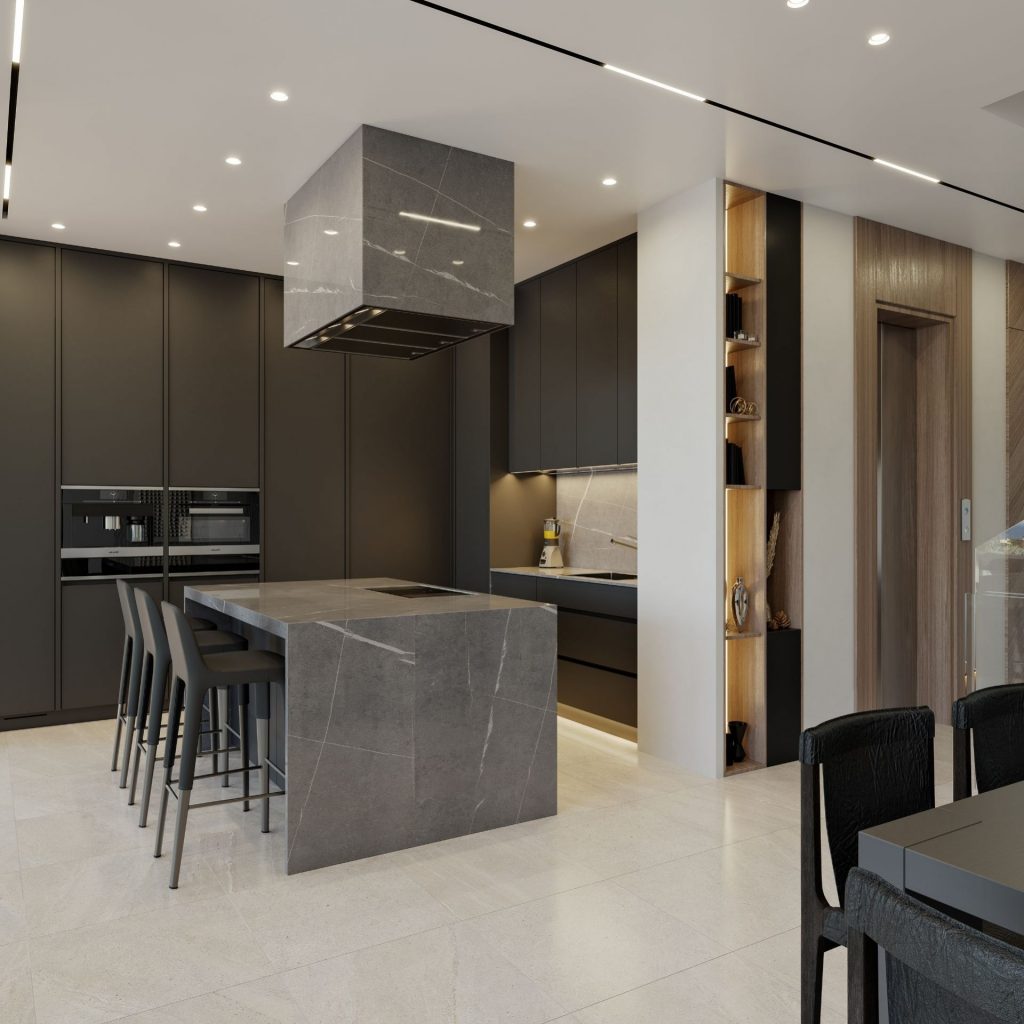The ground floor (153m²) features a self-contained studio flat, ideal for a maid, guests or even short-term rental. It includes its own kitchen, ensuite bathroom and a spacious living/sleeping area, providing complete privacy and convenience.