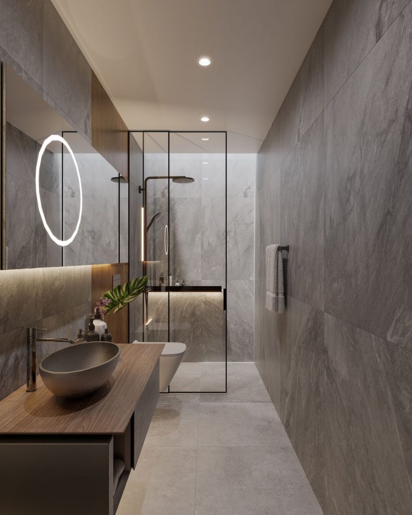 The ground floor (153m²) features a self-contained studio flat, ideal for a maid, guests or even short-term rental. It includes its own kitchen, ensuite bathroom and a spacious living/sleeping area, providing complete privacy and convenience.