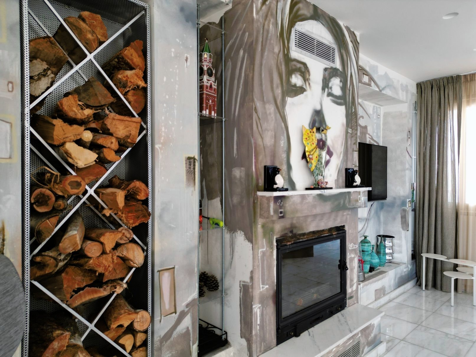 ?There is a home automation system controlling the lights, shutters and sound system and alarm system with cameras.