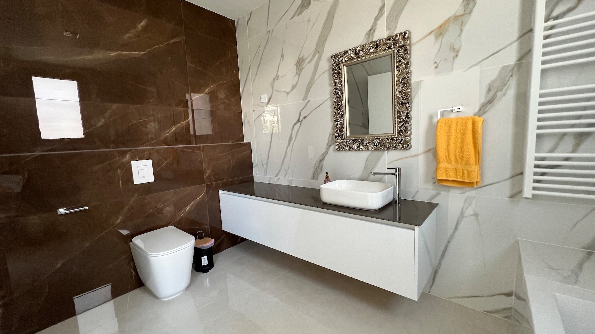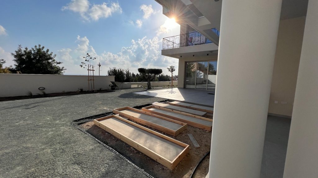 The house enjoys marble floors and high ceilings adding to its luxury character, underfloor heating, electrical heaters, VRV system, A/C units in all the rooms, photovoltaic system 7kw, a pool provision, and a double side to side covered parking area.