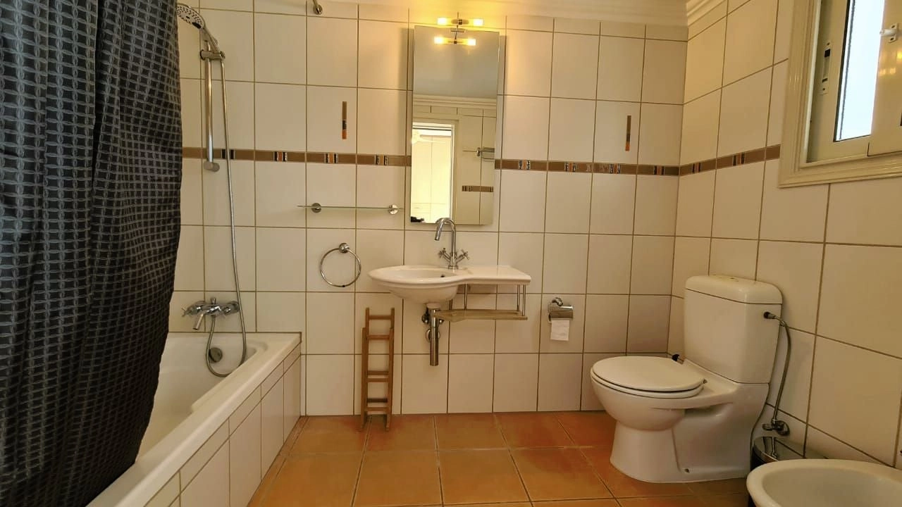 The villa is 400sqm on a plot of land 1750sqm. It consists of a large living room, dining room, and kitchen. Five bedrooms one of them on the ground floor and 4 bathrooms. Fully central heated and air-condition, double glazing windows. The walls of the villa are isolated against heat and cold.Externally: Sauna room. Very big garden and swimming pool 13m x 5m. all external statues will remain. There is also a borehole irrigation with computerized system.Internally: All furniture and electrical appliances will remain in the villa.