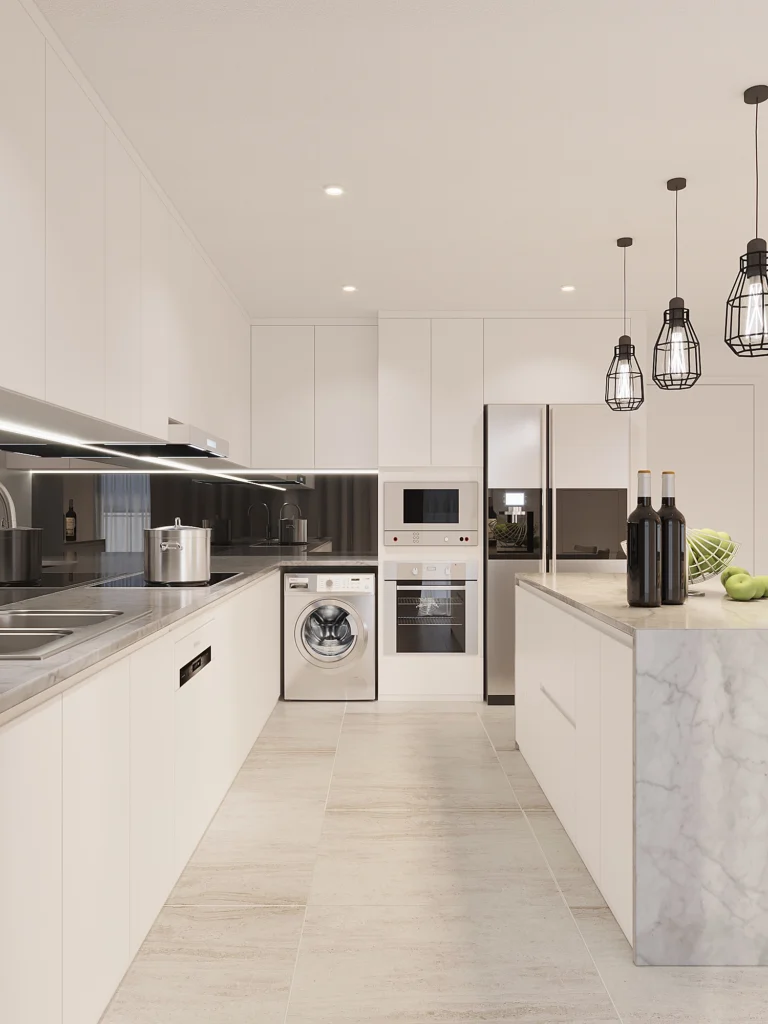 Each city villa is completed with quality finishes including European tiles flooring, parquet in all areas of the villa, marble upgraded kitchen, marble vanity tops and bathroom finishes.