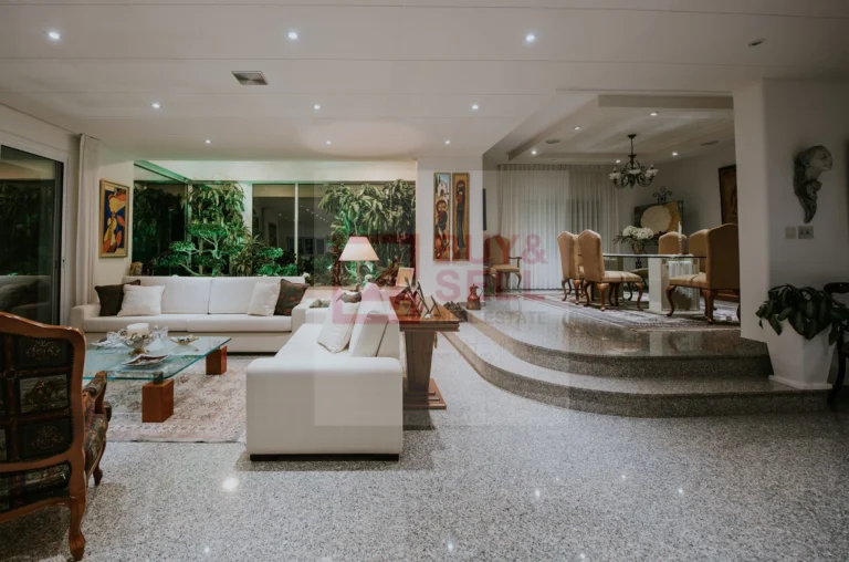 This is a outstanding sea view bungalow in Agios Athanasios with covered area of 400m² and plot size 14,715m².There is a separate guest house with 2 bedrooms,kitchen,bathroom.The house has an electric gated entry drive with double electric garage.The house offer 4 bedrooms,master bedroom en-suite with walk in wardrobes,c/h,a/c,full bathroom,guest wc,separate kitchen,utility room/laundry room,large sitting dining TV area with sliding patio doors which look out onto the 6×12 overflow swimming pool and panoramic views,outside there is shower/wc,BBQ area and bar Kiosk.