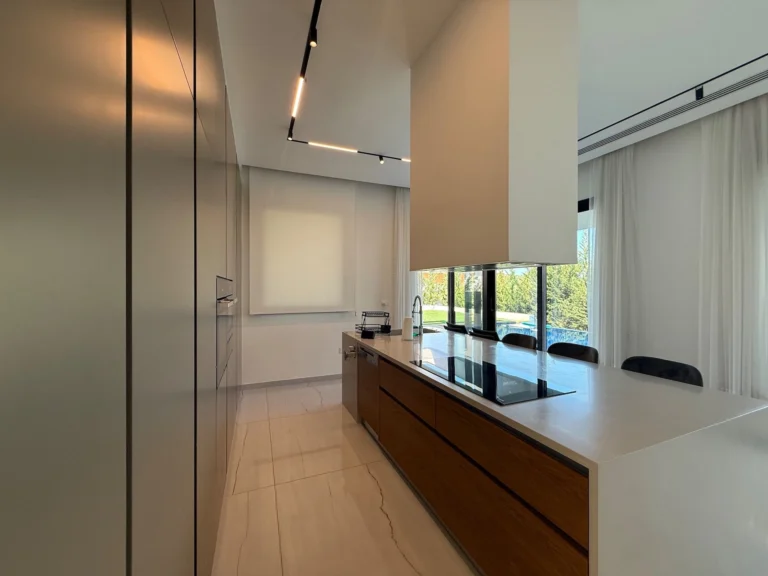 Land 1.327 sq. m. Villa 600 sq. m. Indoor swimming pool working with oxygen – heated- electrical safety cover. Elevator large dimensions for 4 floors suitable also for a wheel chair. Electronic Smart house system with structure cabling. Internet connection in all villa CCTV cameras Alarm system Lighting system Intercom telephone system Central music system Solar storage system with 16 vacuum panels. Humidity collector units Landscape garden with rocks, artificial grass, decking, mosaics, trees and flowers. Floor heating units Air-condition system Jacuzzi- sauna Fire place Home cinema Floor and wall mounted mosaics. Basement area: bedroom, shower, kitchen, entertainment areas, cava, 2 storages, cover parking for 2 cars. Ground floor: open plan kitchen- dining-salon. Entrance area with indoor pool and sitting area, sauna, Jacuzzi, glass roof, shower, TV room, cellar, garden & sea view large specious verandas. 1st floor: 3 bedrooms, full bathroom with steam bath, full bathroom, Kitchenette, large sea view verandas. 2nd floor-roof: shower-WC, roof garden. Entrance of the house: drive in area, four covered parkings.