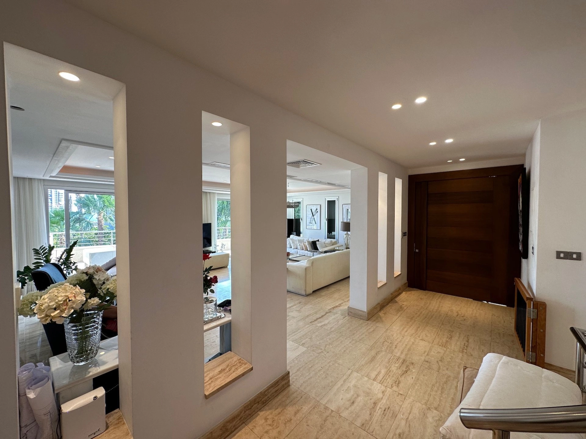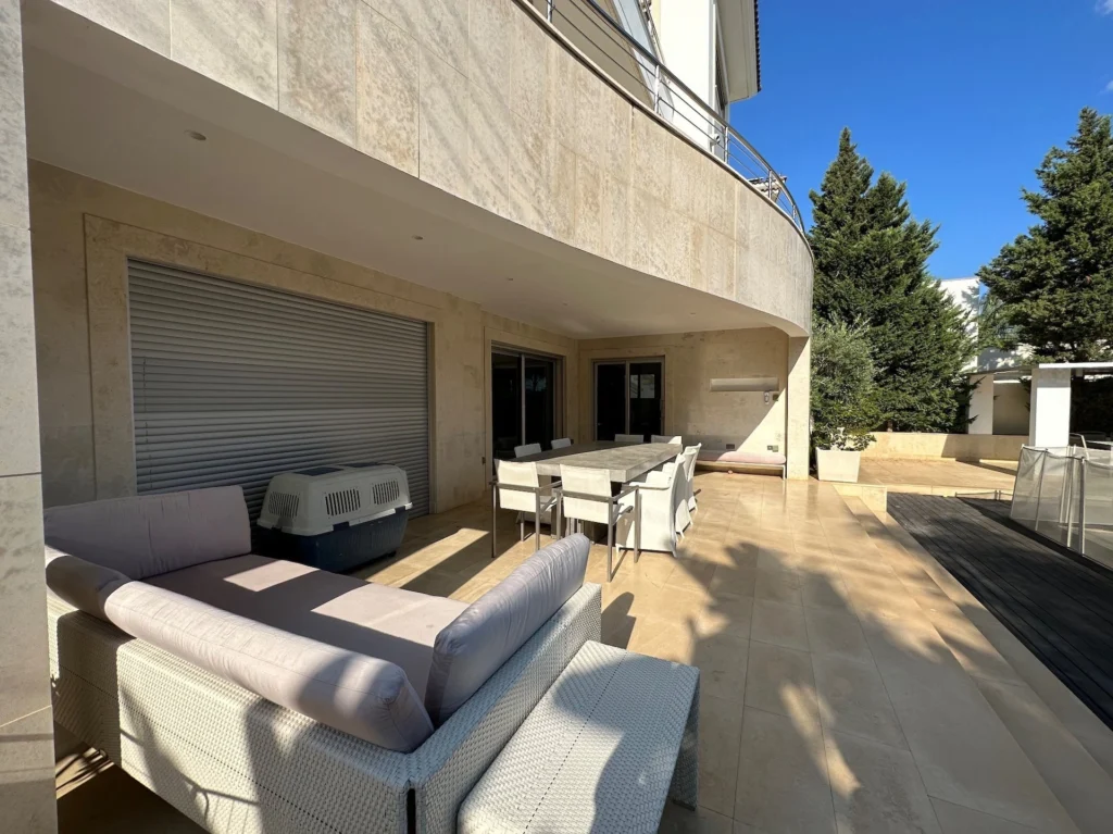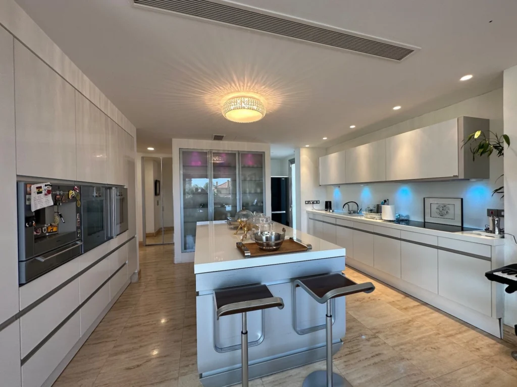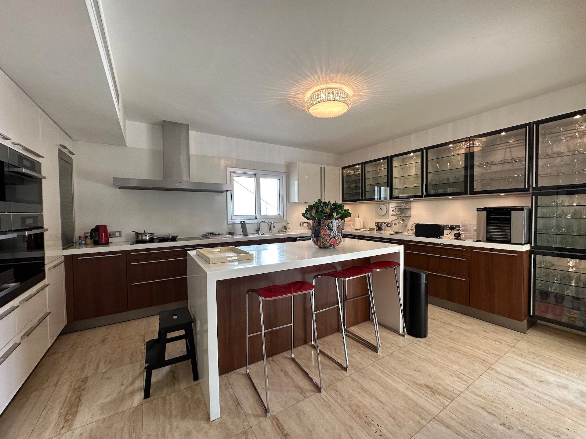A fabulous 5 bedroom all en suite custom built villa in one of the sought after locations of Agios Tychonas near the Four Seasons.450m² covered area, 856m² plot size, 2010 build with Panoramic sea views.3 levels, under floor heating diesel, VRV central a/c, alarm system, cameras, electric gates, water softener, pressurized water system, double glazed windows electric shutters. Master bedroom en suite with walk in wardrobe and Jacuzzi, further 2 bedrooms have en suite with bath and 4th bedroom en suite with shower,2 guest wc’sSalt water overflow swimming pool with BBQ area.2 kitchens very modern High tech with island bar and electrical appliances,2 sitting/dining/tv areas,Maids quarter, utility area, laundry shoot.Marble floors throughout the property.Large balconies with panoramic views.Covered outside pergolas and sitting areas.Parking for 5 cars.
