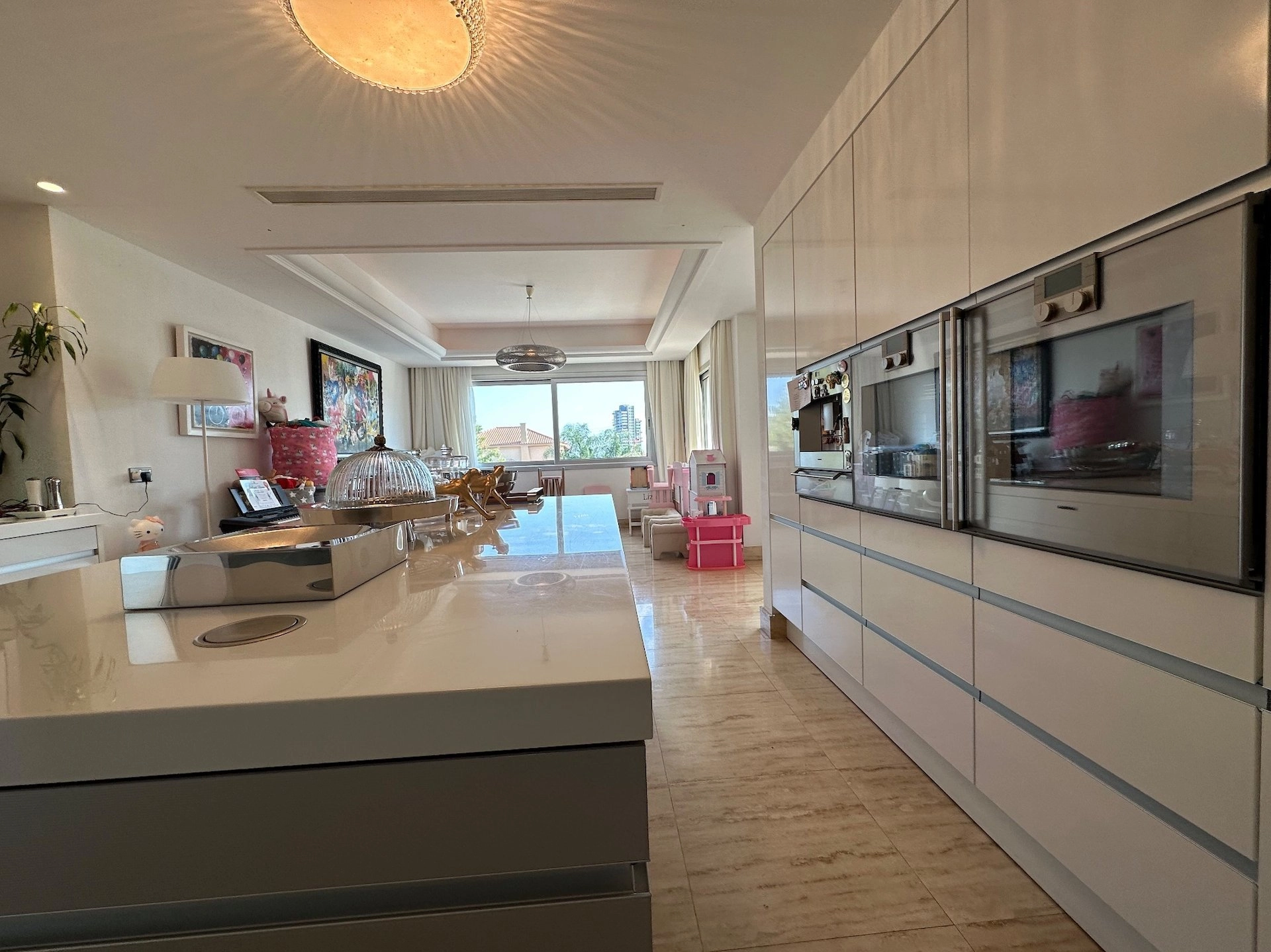 A fabulous 5 bedroom all en suite custom built villa in one of the sought after locations of Agios Tychonas near the Four Seasons.450m² covered area, 856m² plot size, 2010 build with Panoramic sea views.3 levels, under floor heating diesel, VRV central a/c, alarm system, cameras, electric gates, water softener, pressurized water system, double glazed windows electric shutters. Master bedroom en suite with walk in wardrobe and Jacuzzi, further 2 bedrooms have en suite with bath and 4th bedroom en suite with shower,2 guest wc’sSalt water overflow swimming pool with BBQ area.2 kitchens very modern High tech with island bar and electrical appliances,2 sitting/dining/tv areas,Maids quarter, utility area, laundry shoot.Marble floors throughout the property.Large balconies with panoramic views.Covered outside pergolas and sitting areas.Parking for 5 cars.