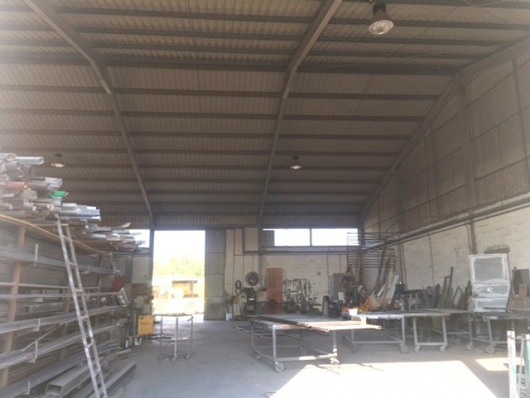 A large warehouse with internal area of 2300m² and has showroom and offices at the front of the building with large warehouse behind. The height of the warehouse is 6metres and the central area is of the warehouse has a height of 9 metres. There are sliding doors on both sides which can open up to 6 metres. The plot size is 12,264m².-90% building density and 60% coverage