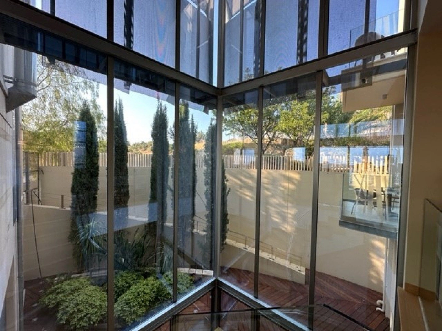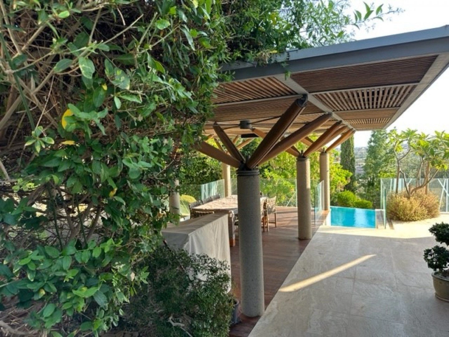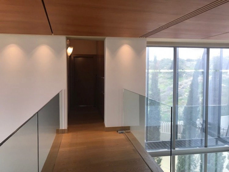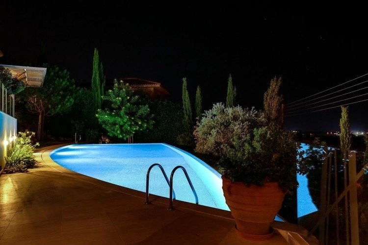 This eco-friendly villa is designed by a very famous architect and located on the top of a hill in Erimi, where the humidity is minimal and offering unobstructed view to the sea and the surrounding area. 10 minutes away from the sea, 12 minutes away from the city center. No expense has been spared in making this luxury property an outstanding home. Full luxury throughout, all interiors and sanitary ware have been exported from abroad to offer the very highest standards of living. Class A’ certificate of Energy • Covered area 439sq.m • Plot area 1186 sq.m • Bedrooms 6 • Bathrooms 6 • Office 1 • Geothermal System • 55KVA generator set covering all house needs • Heated Swimming pool 18 meter long • Elevator • Fire place • Smart House System (controlling Audio & Video, lighting's, shutters, heating) • Satellites • Central Air-conditioning system • Under floor central heating • Garage for two cars • Gym • Two personnel apartments in the basement • laundry • Barbecue • Monitored entrance access • Security system with 8 smart cameras • Two artesian wells 120m deep each. Swimming pool 18 meters long. Garden 500 square meters with changing room, toilet and shower next to swimming pool.