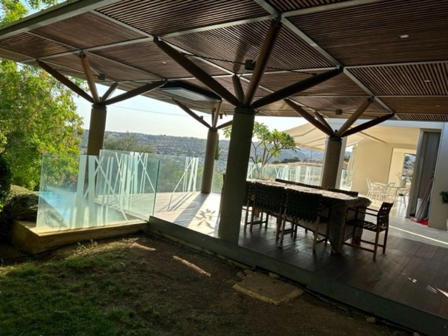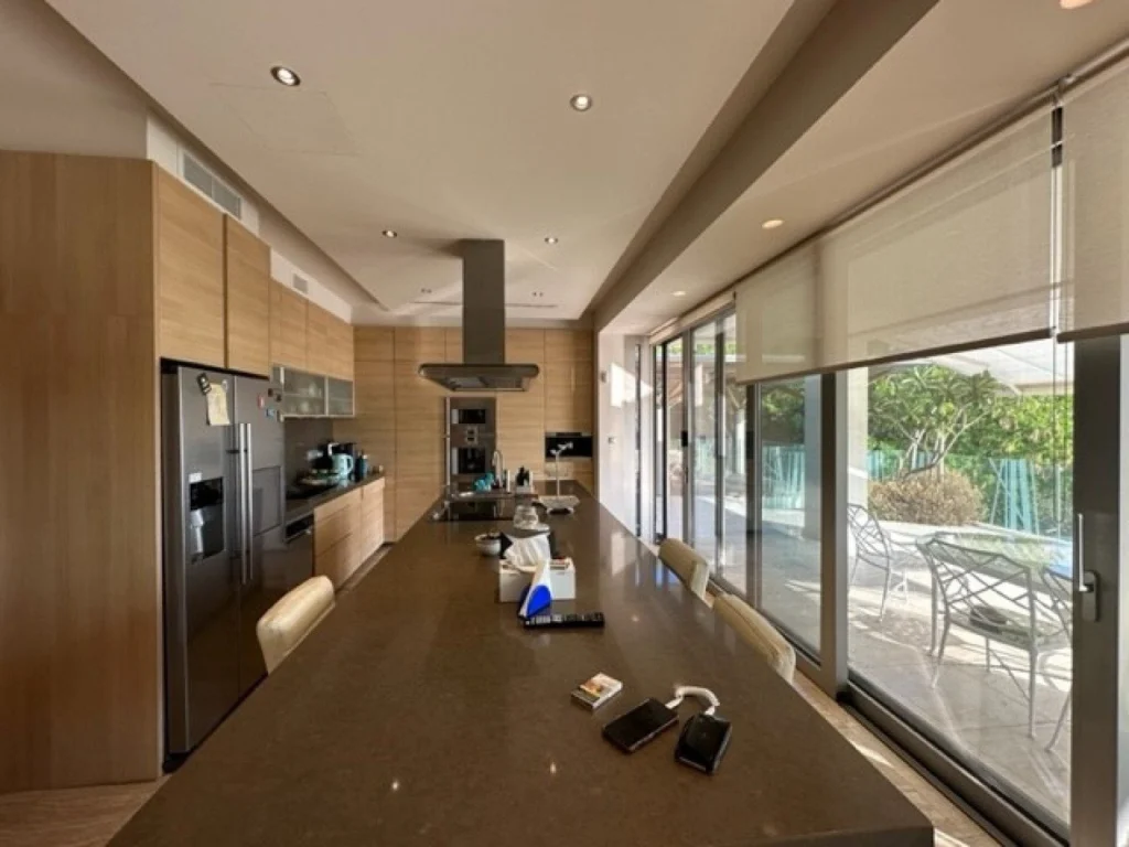 This eco-friendly villa is designed by a very famous architect and located on the top of a hill in Erimi, where the humidity is minimal and offering unobstructed view to the sea and the surrounding area. 10 minutes away from the sea, 12 minutes away from the city center. No expense has been spared in making this luxury property an outstanding home. Full luxury throughout, all interiors and sanitary ware have been exported from abroad to offer the very highest standards of living. Class A’ certificate of Energy • Covered area 439sq.m • Plot area 1186 sq.m • Bedrooms 6 • Bathrooms 6 • Office 1 • Geothermal System • 55KVA generator set covering all house needs • Heated Swimming pool 18 meter long • Elevator • Fire place • Smart House System (controlling Audio & Video, lighting's, shutters, heating) • Satellites • Central Air-conditioning system • Under floor central heating • Garage for two cars • Gym • Two personnel apartments in the basement • laundry • Barbecue • Monitored entrance access • Security system with 8 smart cameras • Two artesian wells 120m deep each. Swimming pool 18 meters long. Garden 500 square meters with changing room, toilet and shower next to swimming pool.