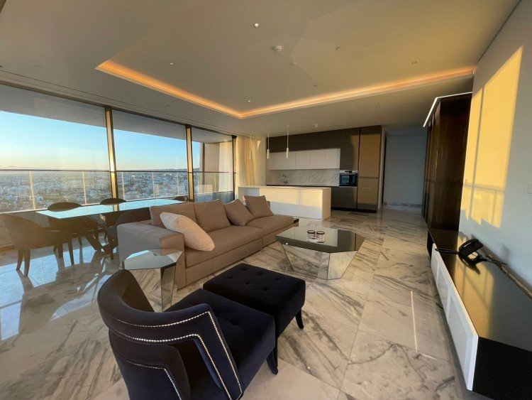 This outstanding 2 bedroom, 2 bathroom apartment is on a Landmark building offering the highest quality throughout. The apartment is offered fully furnished, brand new however NO VAT due to resale. The views are panoramic from all sides of the apartment, under floor heating, VRV central a/c, covered parking, storage. Two high speed elevators, CCTV security systems, alarm systems, reception in lobbies with 24hour reception service and security gated enclosure. Access to the water club, gym, etc.