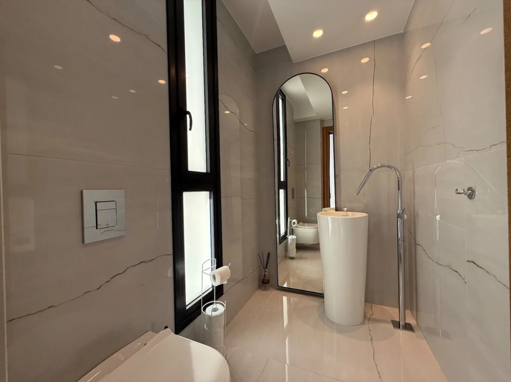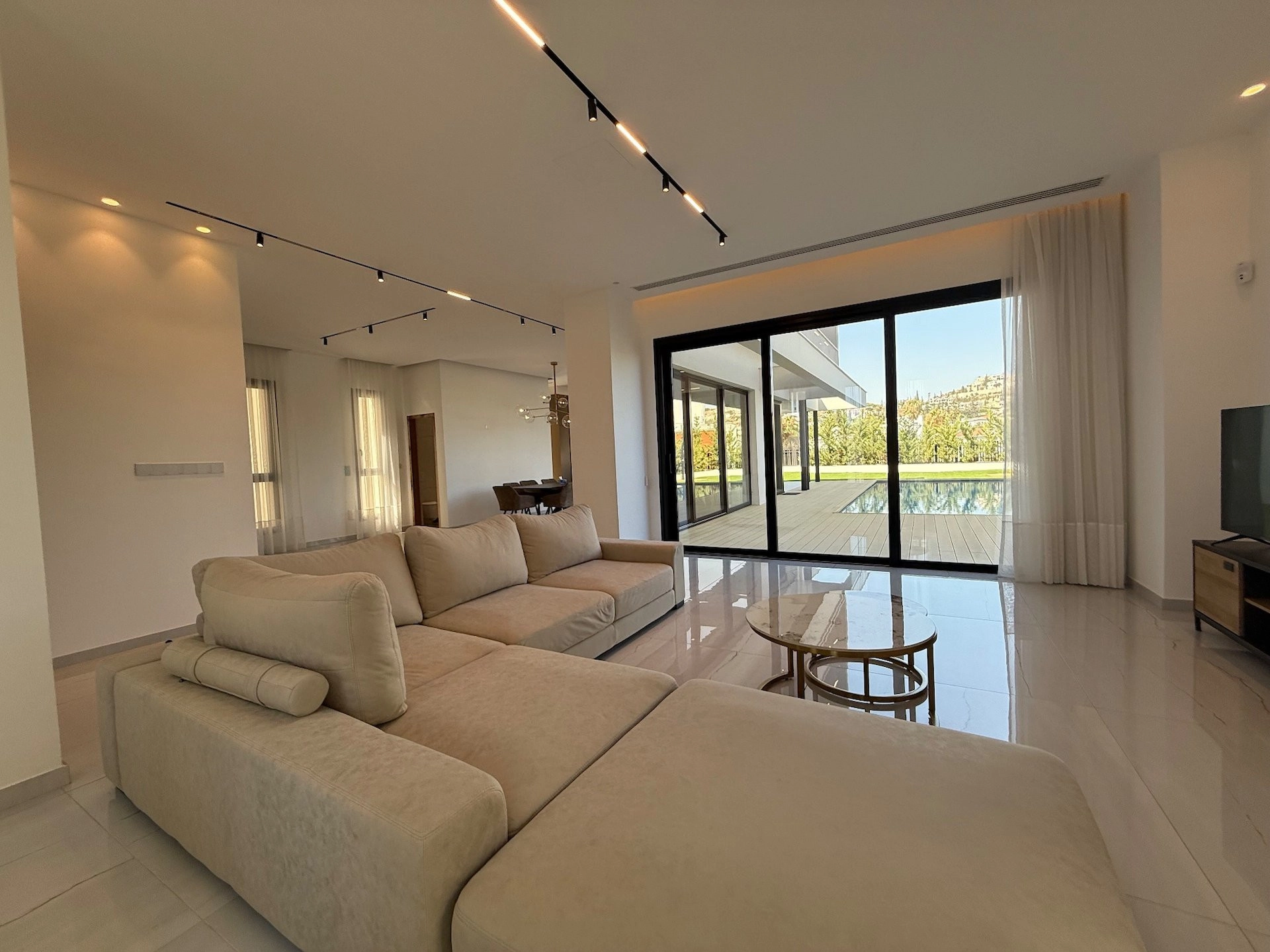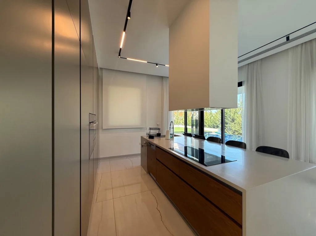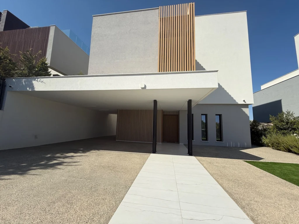 This outstanding property is in the sought after location of Agios Tychonas.All bedrooms are en suite. Master with walk in wardrobe.Maids quarter.Modern fully equipped kitchen with island bar, comfortable sitting/dining/lounge areas, high ceilings with patio doors accessing the gardens and the overflow swimming pool.Guest wc, landscaped gardens, covered parking, fully a/c throughout, under floor heating, secure gated entry to the house.The highest quality throughout with no expense spared.