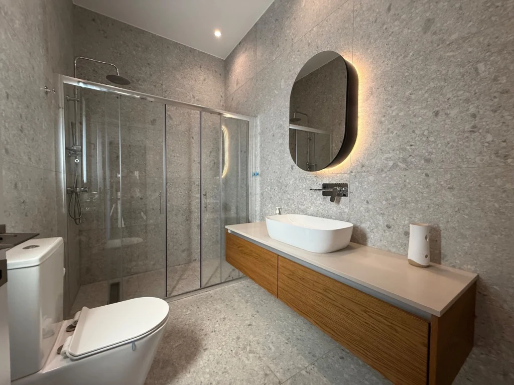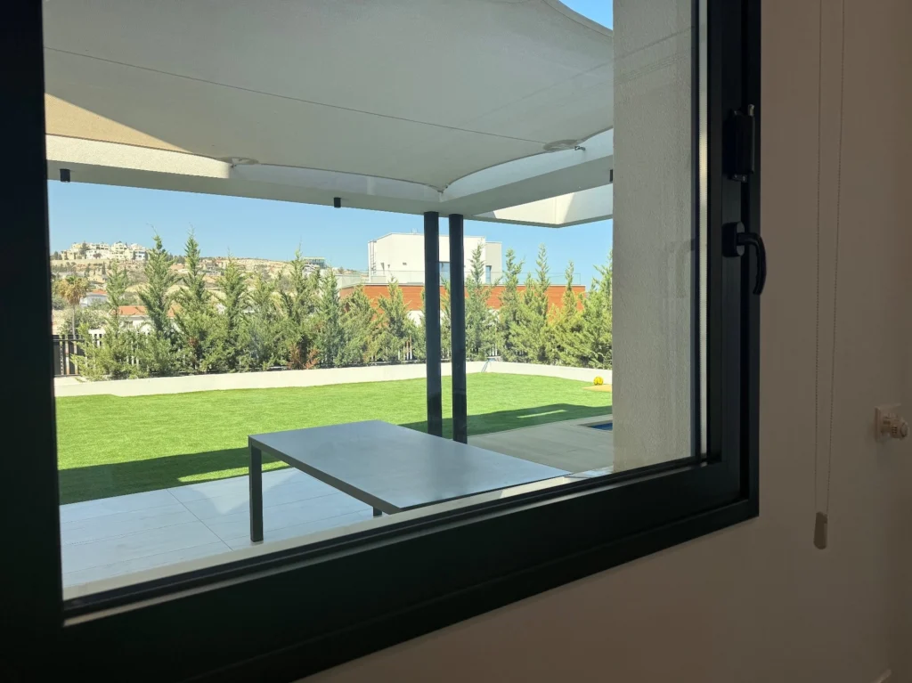 This outstanding property is in the sought after location of Agios Tychonas.All bedrooms are en suite. Master with walk in wardrobe.Maids quarter.Modern fully equipped kitchen with island bar, comfortable sitting/dining/lounge areas, high ceilings with patio doors accessing the gardens and the overflow swimming pool.Guest wc, landscaped gardens, covered parking, fully a/c throughout, under floor heating, secure gated entry to the house.The highest quality throughout with no expense spared.