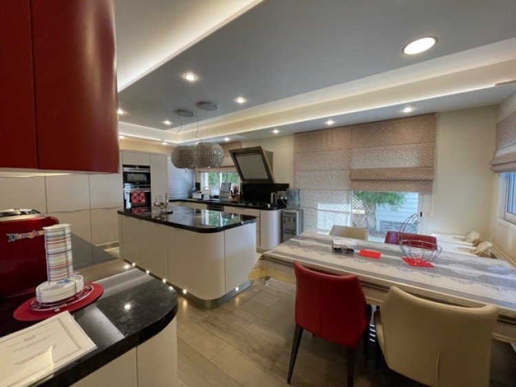This beautiful detached house in Ekali is in excellent condition and offers full quality throughout. No expense has been spared in making this property into a lovely home.Comfortable sitting, dining, lounge areas, separate fully equipped Deluxe kitchen with island bar /breakfast/diner and utility room. All the electrical appliances are of top quality, guest wc.the upper level has 4 bedrooms and 2 loft conversions which include play room and maids quarter.Master bedroom en suite with large walk in wardrobe. Alarm system, central sound system, double glazed windows with electric shutters, water softener, bore hole.swimming pool with outside sitting areas.
