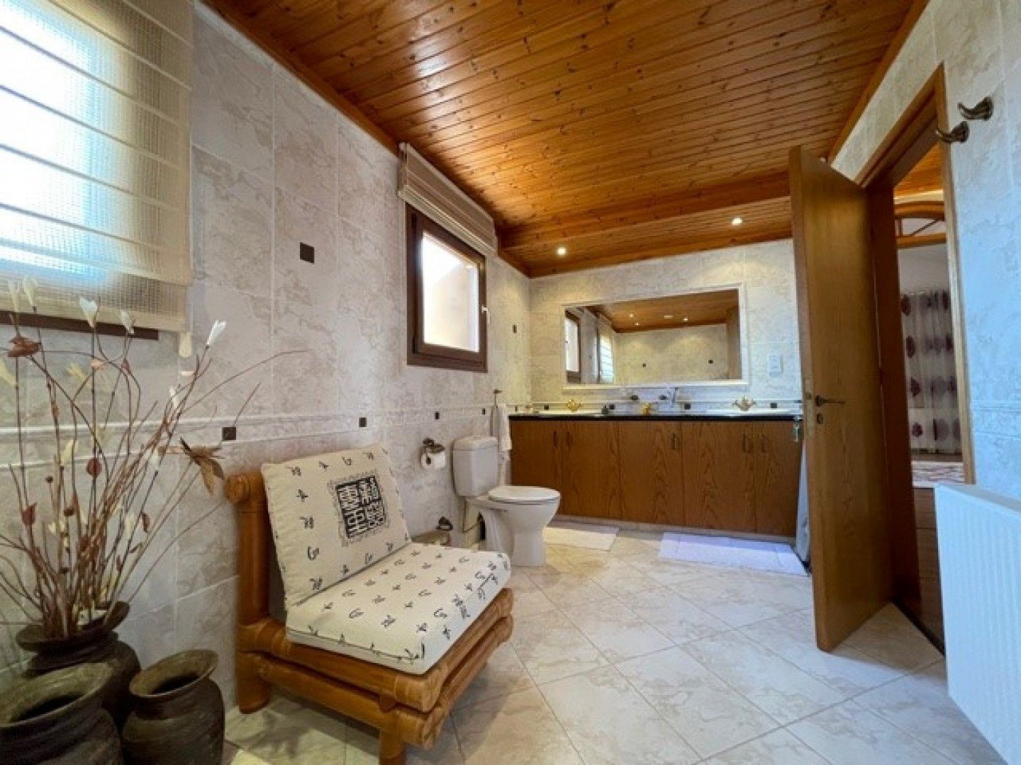This outstanding property is in the sought after location of Pyrgos.The villa is tucked away in a Cul De Sac surrounded by the most beautiful landscaped gardens, heated swimming pool, pergolas, outside entertaining BBQ areas and outside kitchens.Plot size is 1,056m² however within the private grounds there is a large green area of a further 900m² approx, which the owners have a written agreement and consent with the Municipality for private use, therefore they have planted fruit trees and vineyards.The property itself is in excellent condition, offering comfortable sitting/lounge/dining areas, study, 3 double bedrooms with bathrooms. Steps from the study lead down to the master bedroom en suite with walk in wardrobe, gym room or further fifth bedroom with shower if required. The kitchen is separate and fully equipped.Fully gas central heated, a/c units throughout, double glazed with French style shutters, alarms, cameras, car-ports for 3 cars.This property is a real haven and a must view!