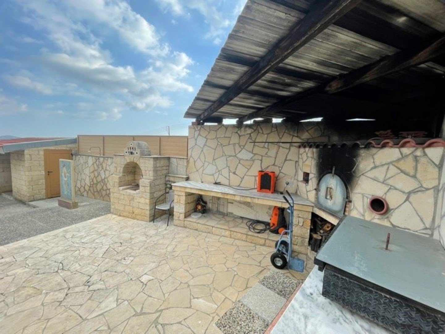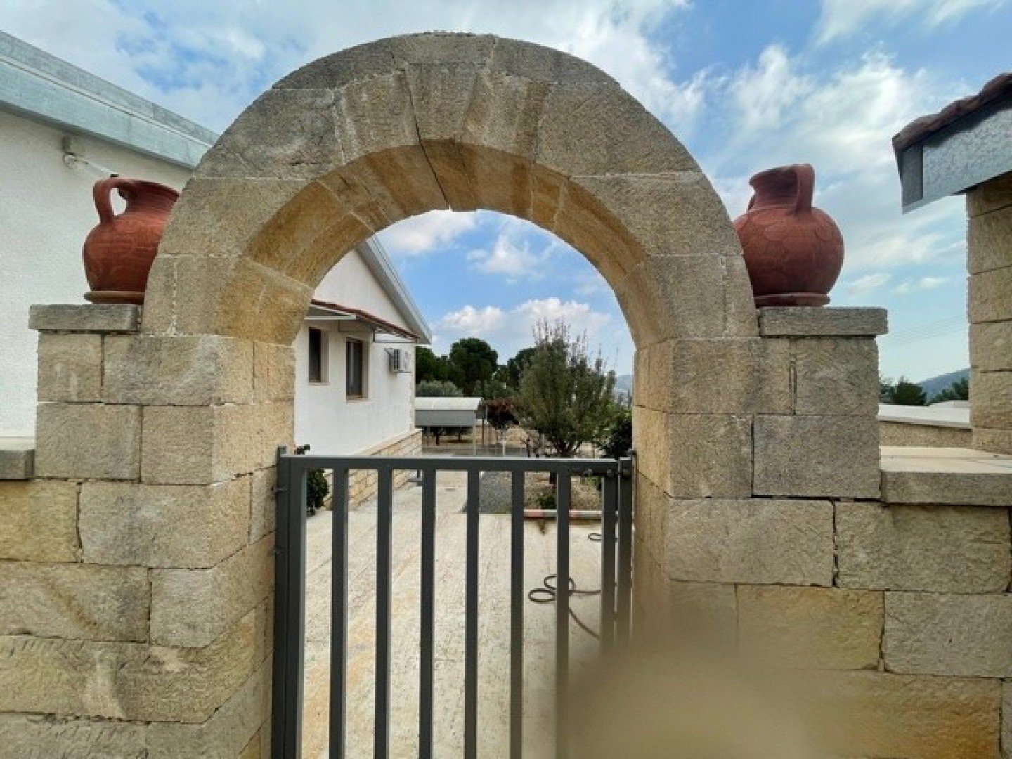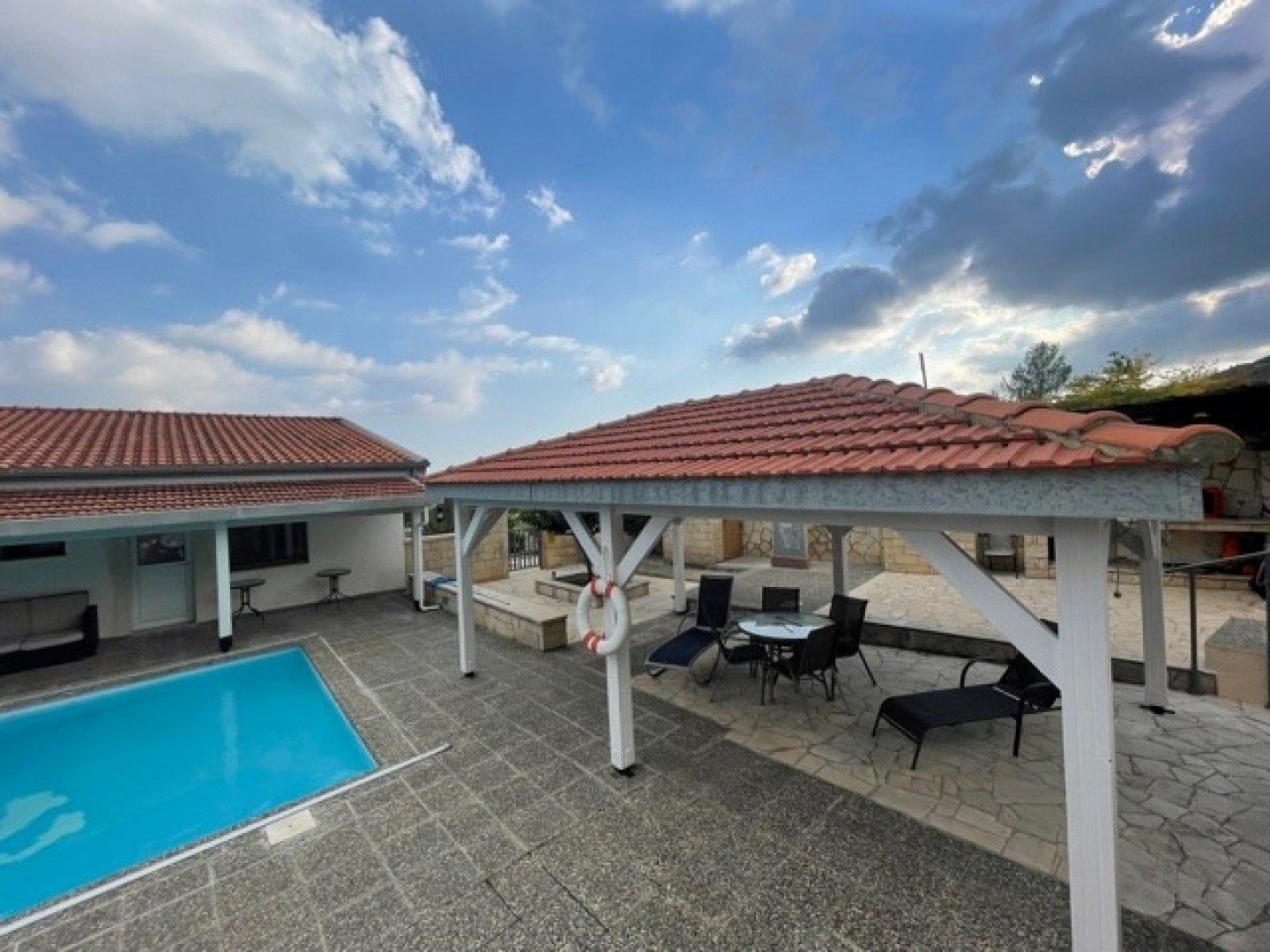 This lovely detached 3 bedroom, 3 bathroom house with maids quarter and or large storage area is in a lovely area which offers easy access to Limassol and all amenities.The Detached Bungalow is on a large plot, electric gated entry drive in, double electric garage, security cameras and photovoltaic system.Comfortable sitting/lounge/dining areas, fully equipped kitchen with breakfast/diner, 2nd kitchen, utility room, sauna, guest wc.3 bedrooms with 3 bathrooms.At the rear end is the swimming pool 11×5.20 with shower/wc, pergolas, built in BBQ and clay over, automatic irrigation system for all the wonderful fruit trees and vineyards, olive groves, generator.Some lovely garden features.