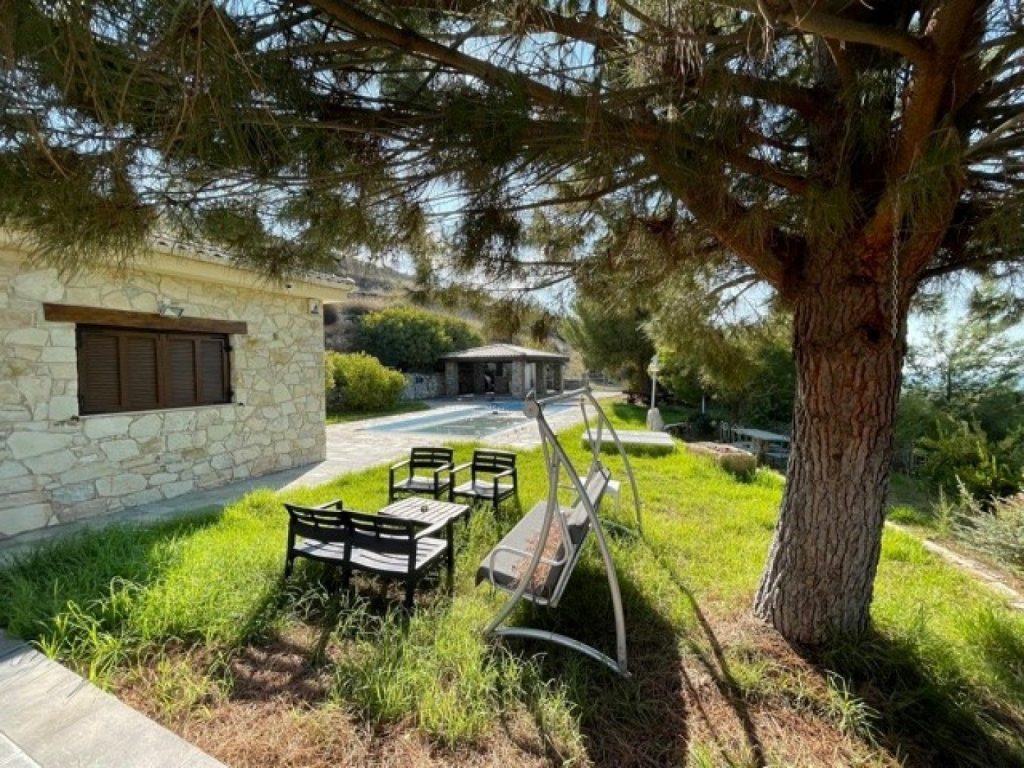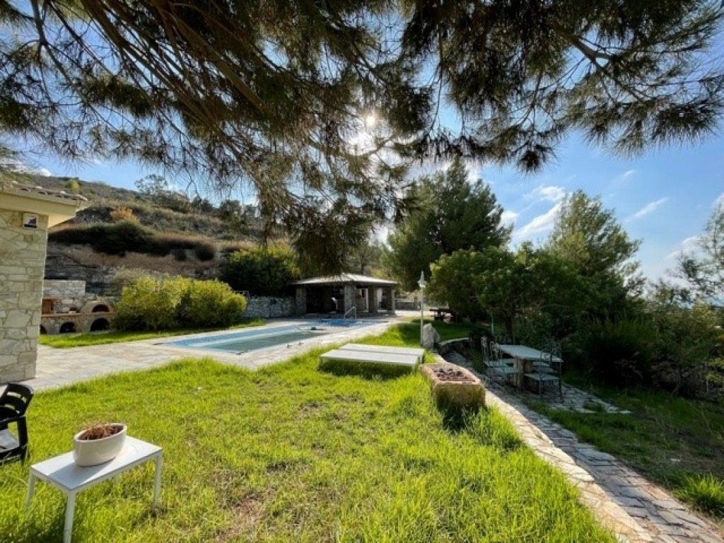 A unique stone built Bungalow in the sought after village of Laniea.The property was custom built in 2010 in an elevated position offering lovely views of the surrounding areas.Very private with a plot size of 11,484m², covered area of the internal is 245m² + verandas, the land is privately gated and offers the best soil for growing fruit, vegetables and vineyards. 4 bedrooms/ 3 bathrooms/ laundry room/ garage/ a/c/ electric central heating/ fireplace/ alarm system/ camera system/ swimming pool/ garden/ bar garden/ barbecue.
