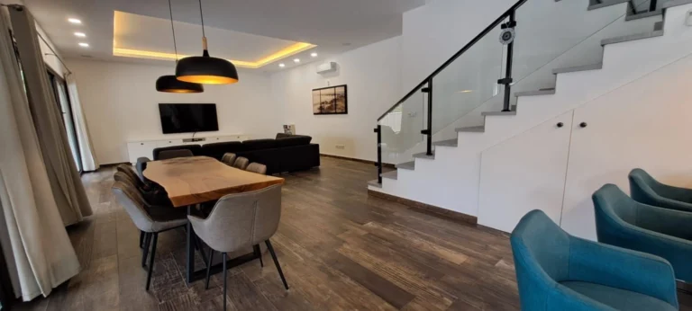 This lovely resale link-detached house is in the sought after location of Agios Athanasios.The property is well maintained and well-appointed.comfortable sitting/lounge/dining areas, separate fully equipped kitchen with two way access to the gardens/pool area with full privacy. Guest wc.The upper level has 4 bedrooms, master en suite and main bathroom, utility area.External stair case has a maids quarter with bedroom/shower/wc.The property is fully central heated, a/c throughout, double glazed bi-folding patio doors, photovoltaic system for very cheap energy consumption.Front landscaped gardens with front patio seating area.