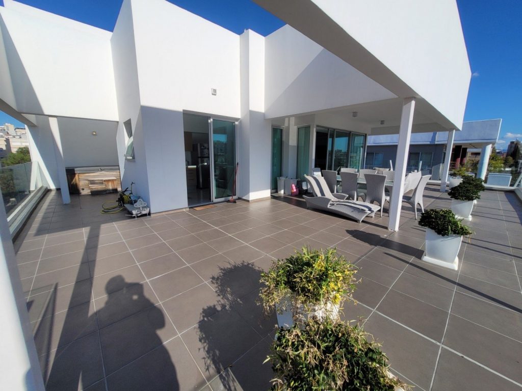 We are happy to present you this luxury, modern design, 3 bedroom penthouse, located in Neapoli area just few meters away from the beach. This beautiful well maintained apartment is situated on the top floor of a 4 storey building, and only ten years old.  Property owns the whole fourth floor.  It has internal area 115sqm, 36sqm covered veranda and another 80sqm uncovered veranda. The apartment has a nice open plan kitchen with living room and dining area, both facing the nice huge veranda with windows, guest wc, main bathroom, master bedroom en suit with toilet and shower and another two big size bedrooms. Outside on the huge veranda there is much space for barbecue area and there is also a Jaccuzzi . From the big veranda you have partial sea view, mountain and city view. This lovely apartment which is in excellent condition, is equipped with ac units throughout, energy saving heating system, automatic blinds, led spotlights, covered parking and a storage room. The apartment has a clear title deed and is ready for transfer to the new owner.
