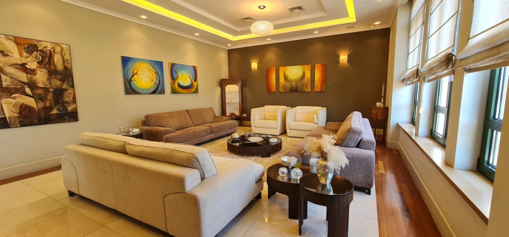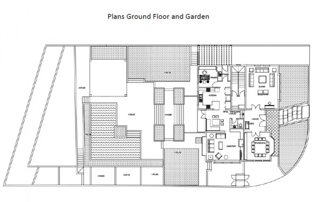 The house is of a postmodern signature architectural style, with real luxury level finishes and a total covered areas of 750 sq.m., consisting of the following facilities: