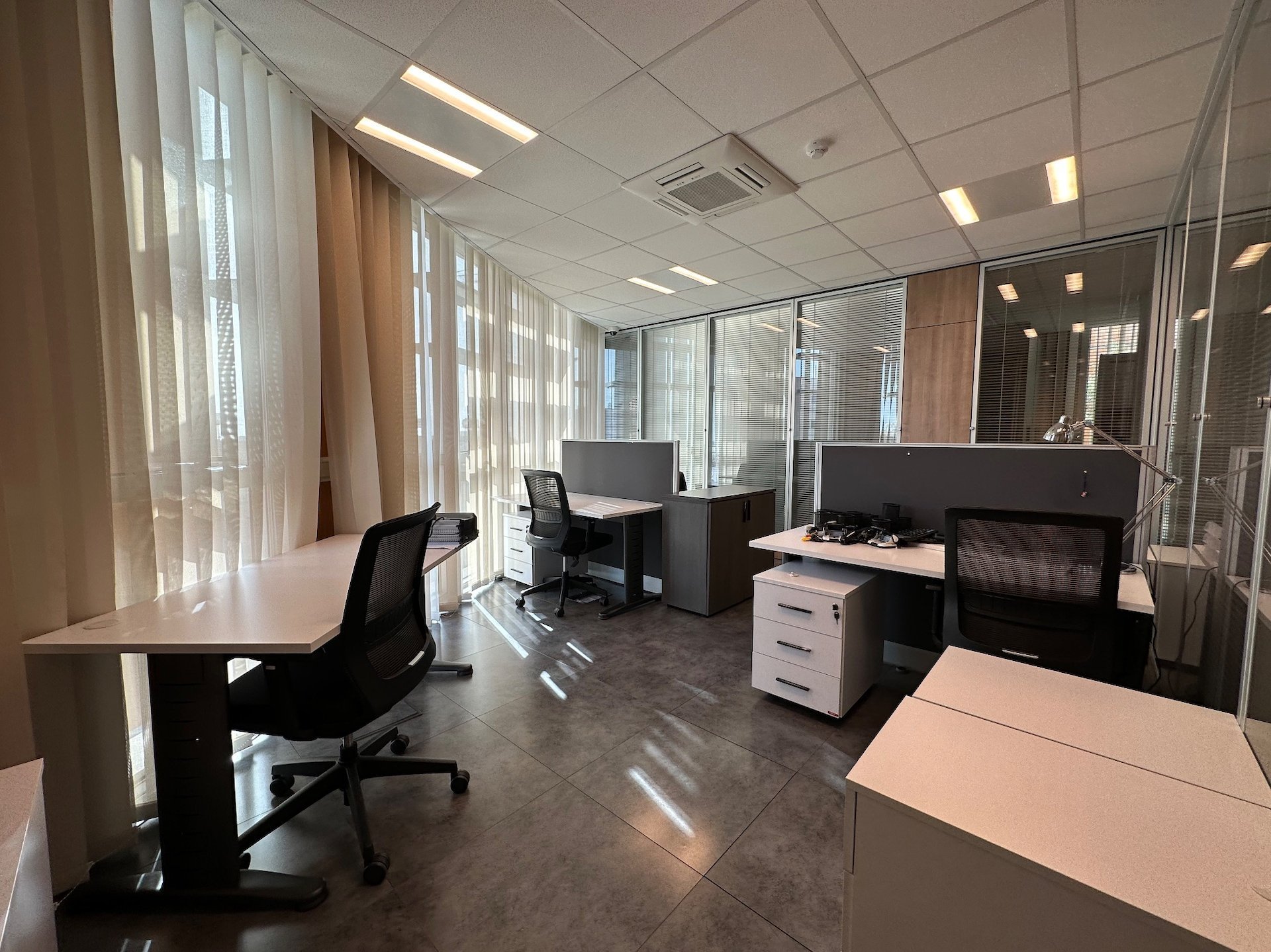 Reception areas, server rooms, conference rooms, glass partitioned offices, 2 kitchens with water heat up and water filtration system, 6 wc, raised floors, fibre optics, security cameras, alarm.