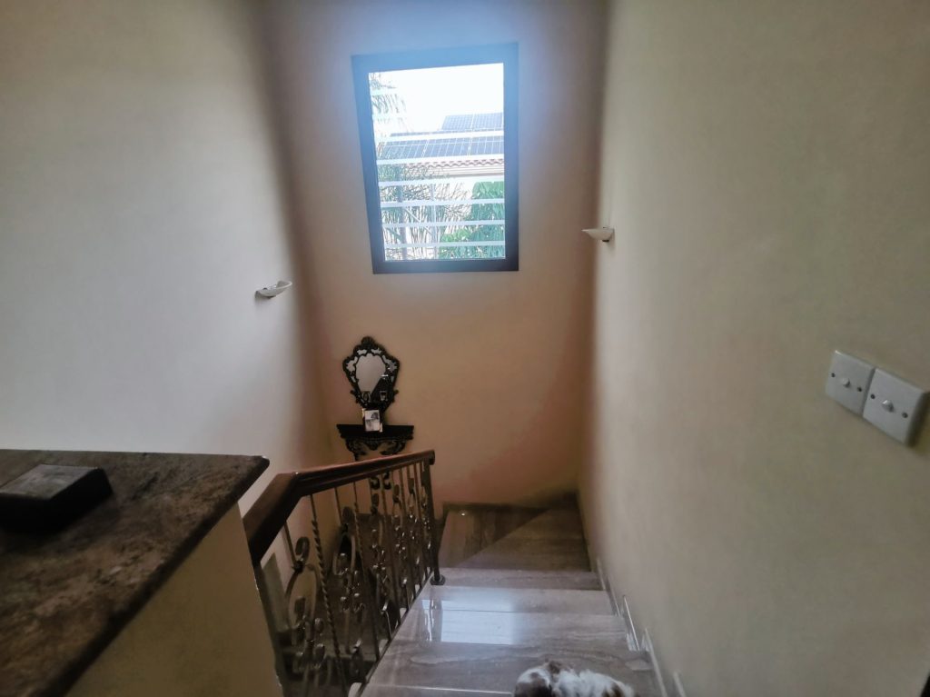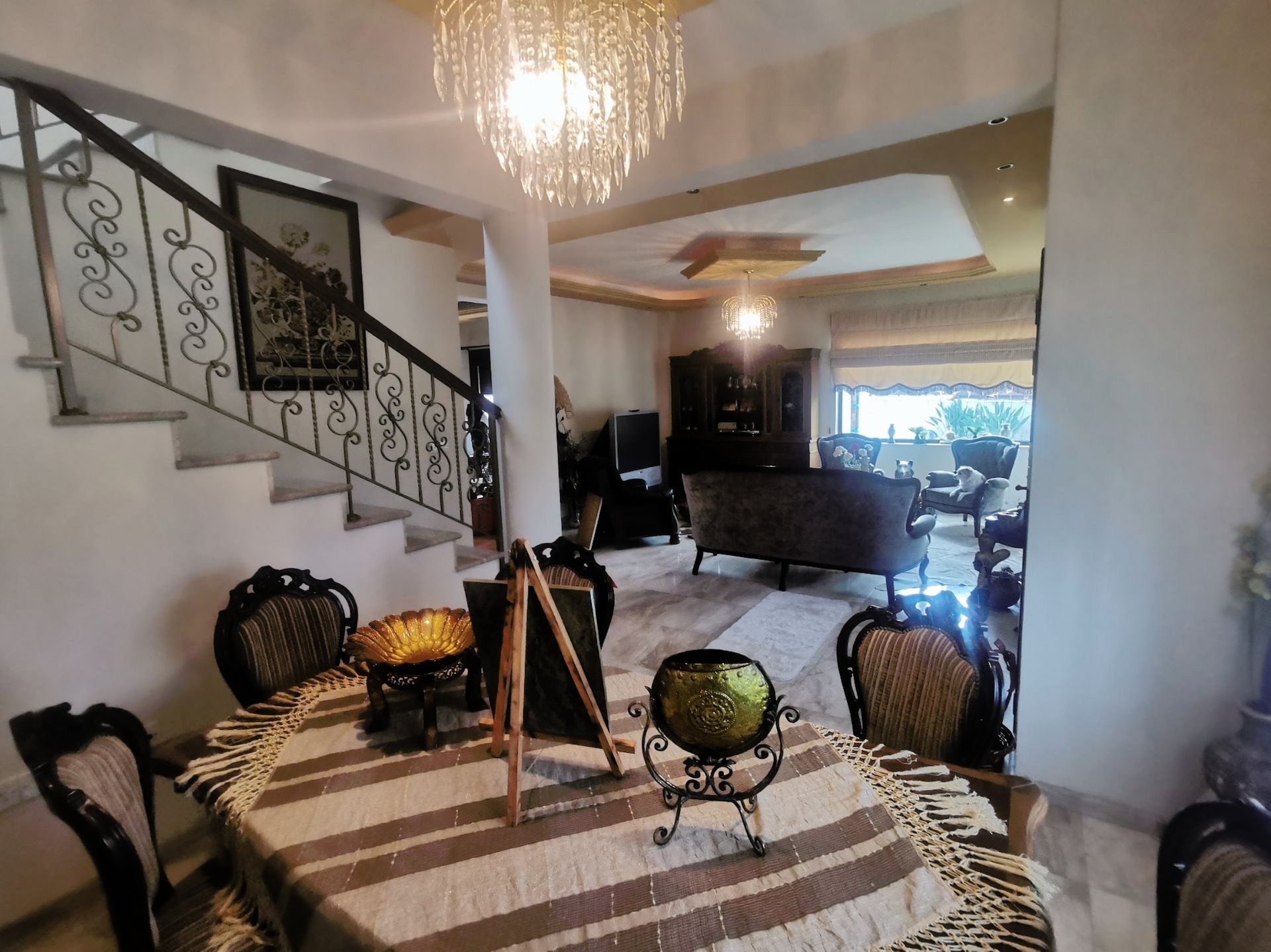 This delightful home includes a separate kitchen, a welcoming living and dining area, four spacious bedrooms with ample cabinet space, including one en-suite, a guest W.C., and a family bathroom. Outdoor enthusiasts will appreciate the private swimming pool, barbecue area, and expansive outdoor spaces perfect for entertaining. Practical features include a solar water heater, central heating, air conditioning in all rooms, and full electrical appliances. Parking is available for up to three cars.