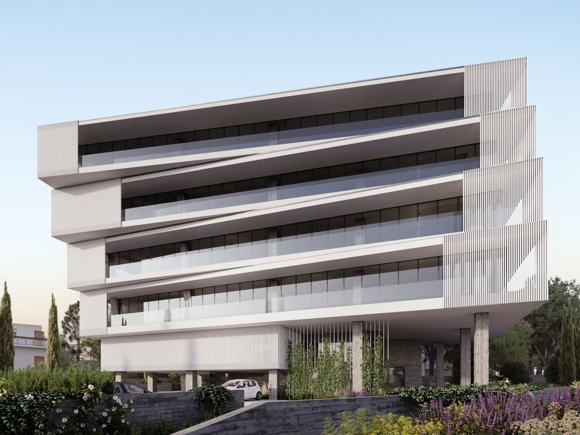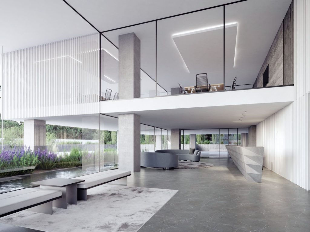 A stunning commercial office building, that epitomizes modern design and offers a prime location for businesses seeking a strategic advantage.