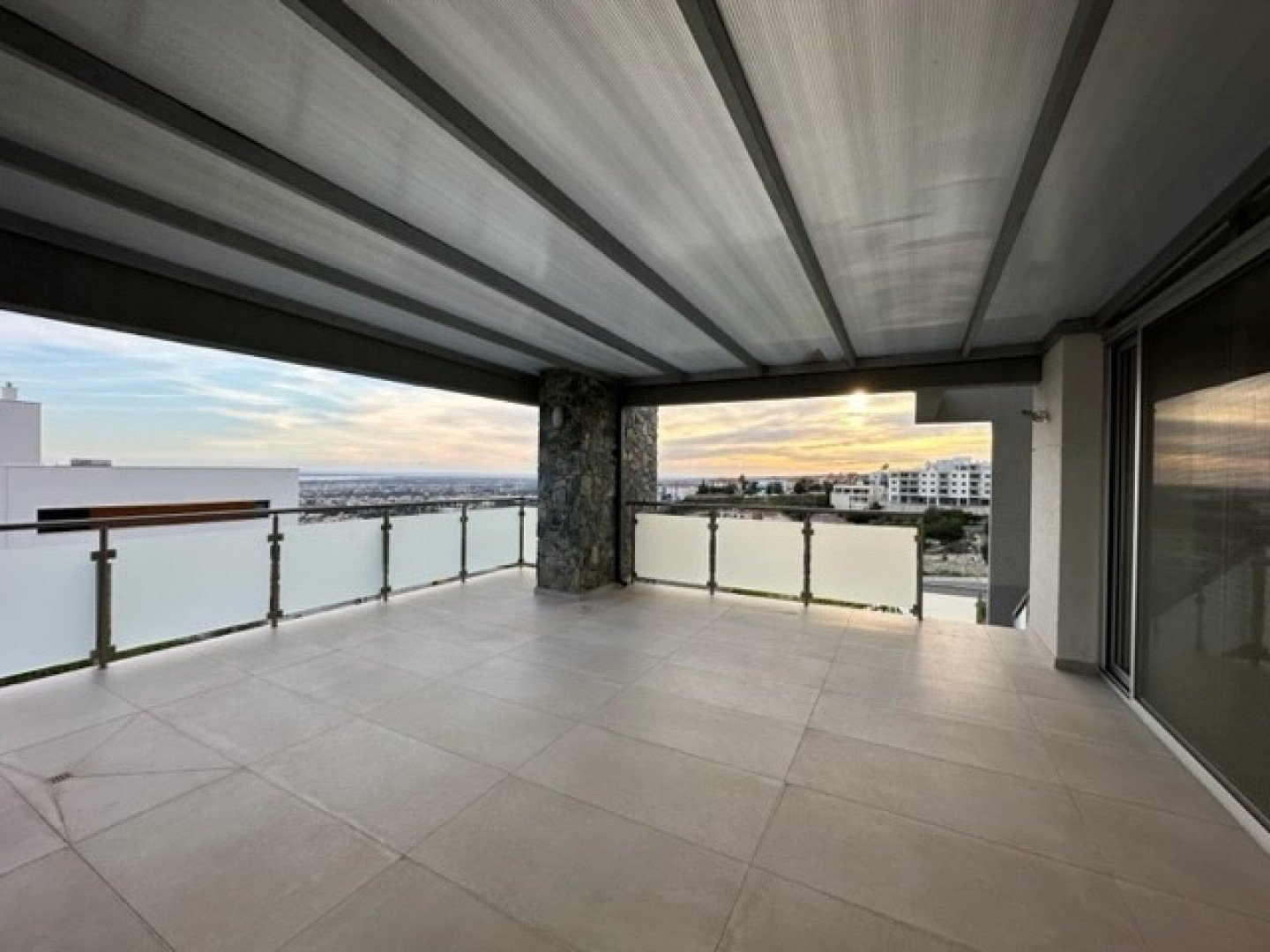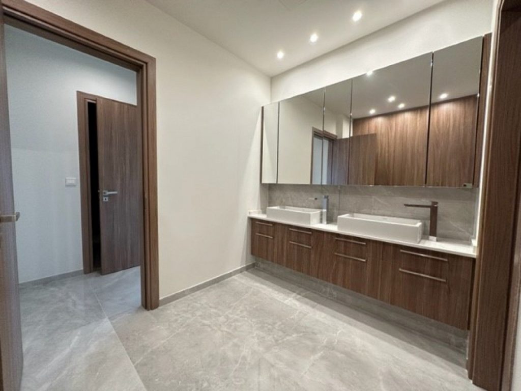 This lovely South facing new modern villa is now on the market .Offering a quiet residential location with beautiful sea views.There is no swimming pool but has room for a pool, meanwhile a further area where an extra room can be built for maid quarter once the title deed is issued.There is final approval on the property.Comfortable bright spacious sitting/lounge/dining areas, feature high wooden ceilings, modern fully equipped kitchen with island bar, pantry/wine cellar, storage room. Guest wc, large covered veranda off the kitchen and lounge area.The lower ground has 3 bedrooms master en suite, main bathroom, utility room, office area, further tv area, access to the gardens.The property has under floor heating, A/C, security cameras and alarm system, double glazed windows shutters.