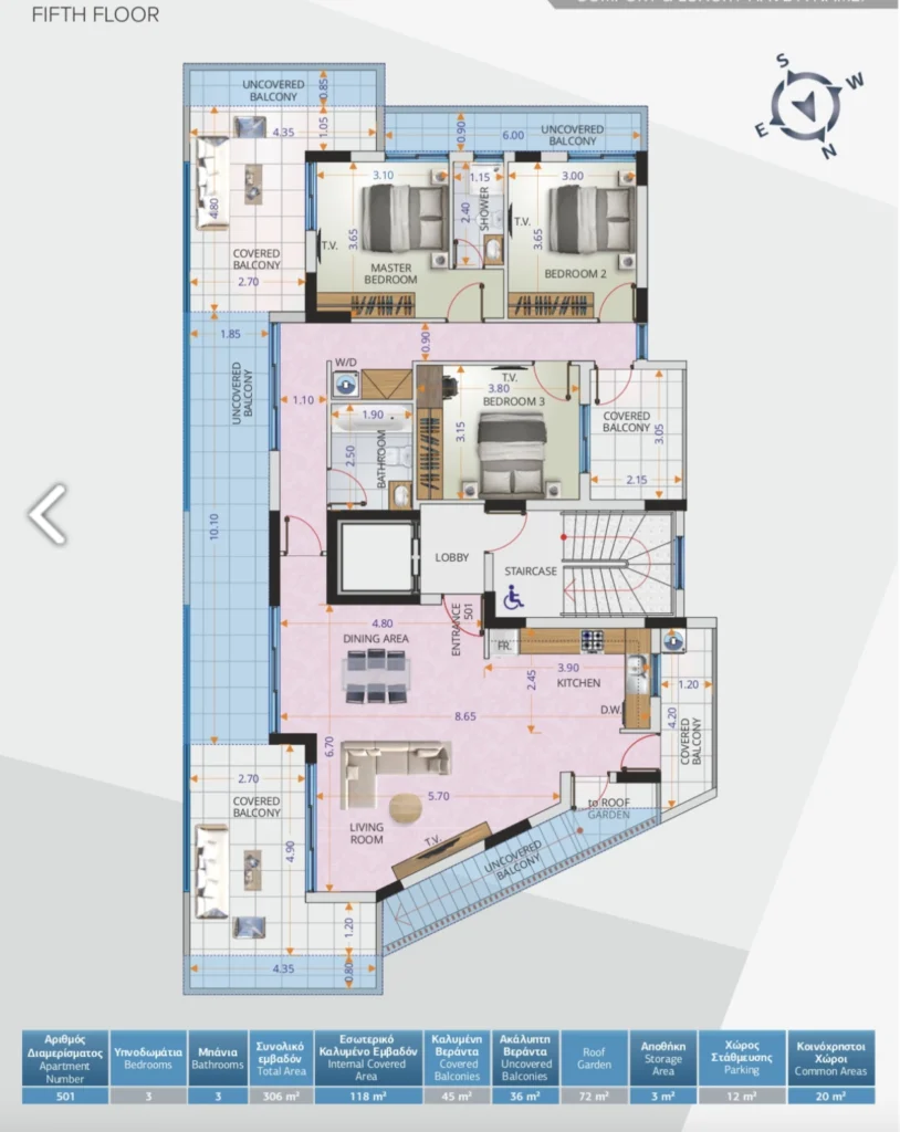 The modern design makes excellent use of features like top quality italian ceramic finish, unique glass balconies and clever layout of living areas designed to offer optional space, privacy and also a views of the prestigious neighbourhood and Famous Larnaca Salt Lake.